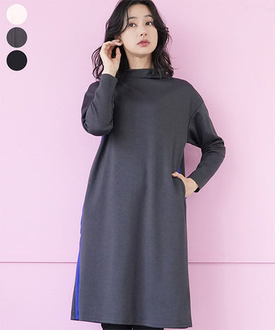 ハイネックメッシュ切替Aラインチュニック 36-1622