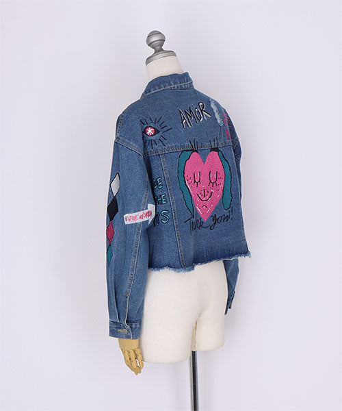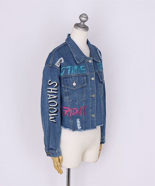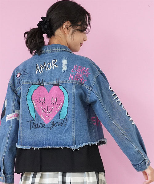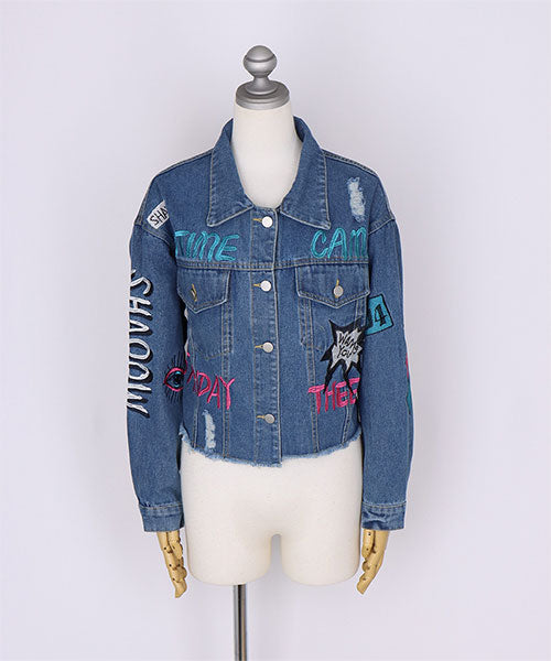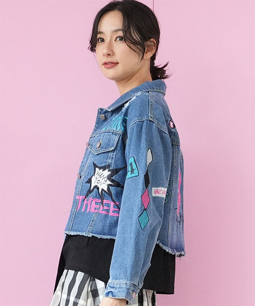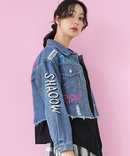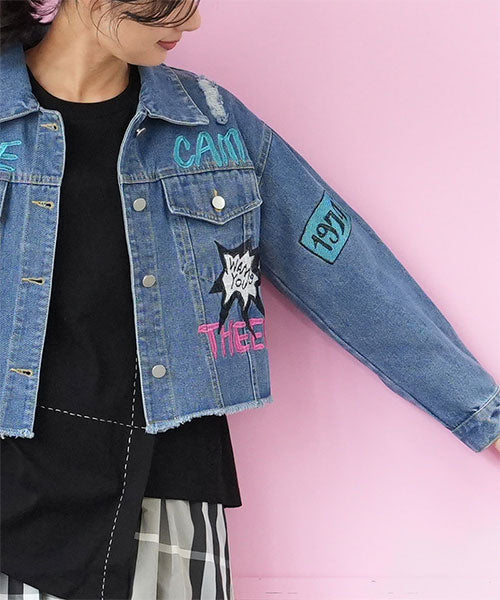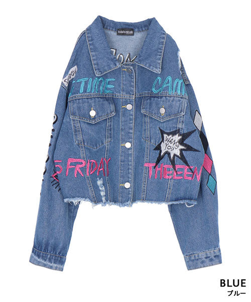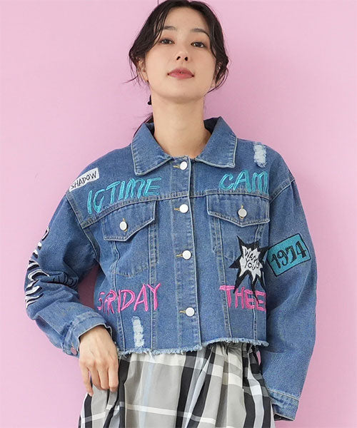 大胆な刺繍デザインが目を惹くデニムジャケットです。 ダメージ加工を施し、羽織るだけでこなれ感のあるカジュアルスタイルが完成。 程よい厚みのデニム素材でロングシーズン活躍します。 ストリートはもちろん、きれいめアイテムと合わせた甘辛MIXコーデもおすすめです。