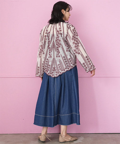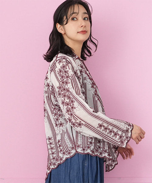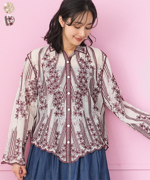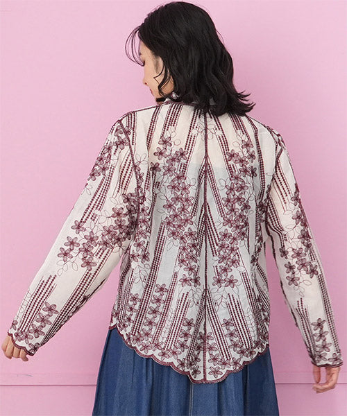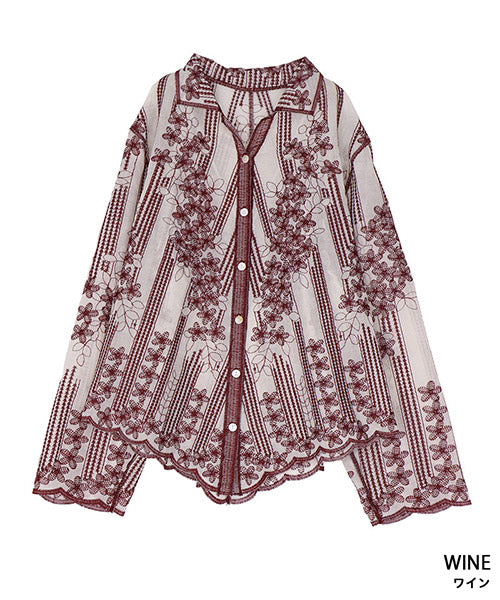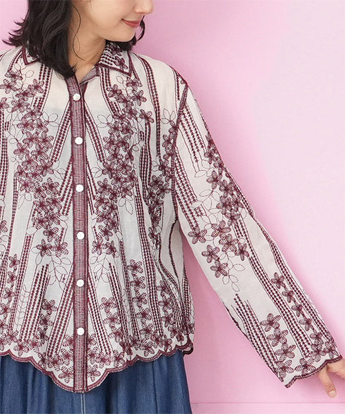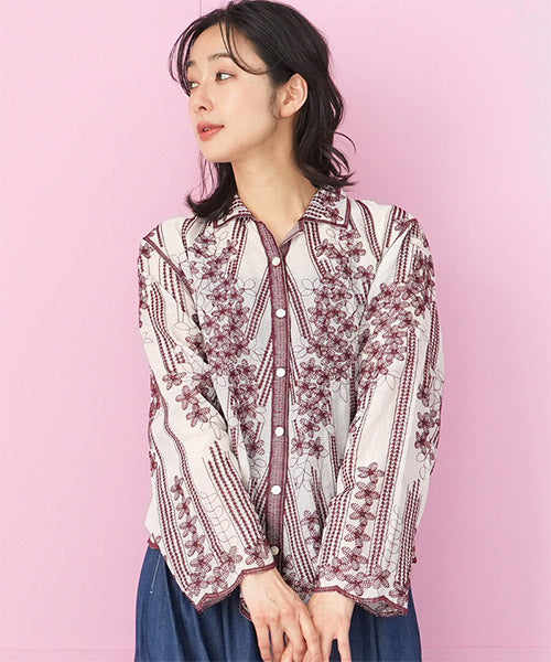 花&星ストライプの総刺繍が、優雅で高見えなシャツブラウスです。