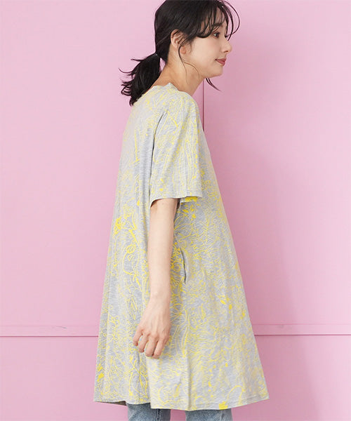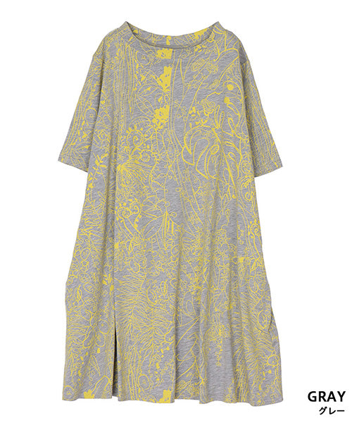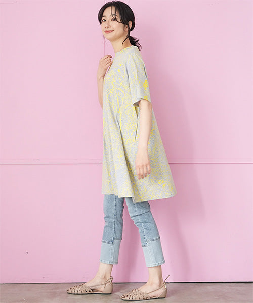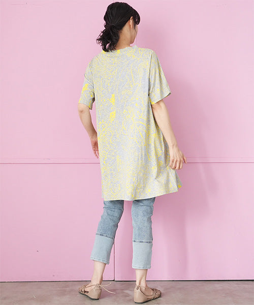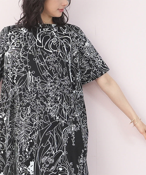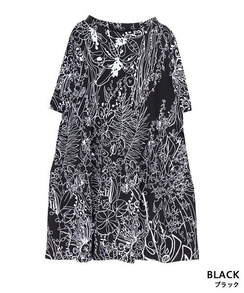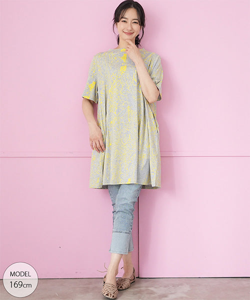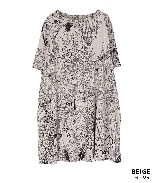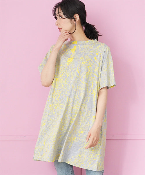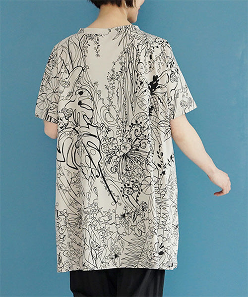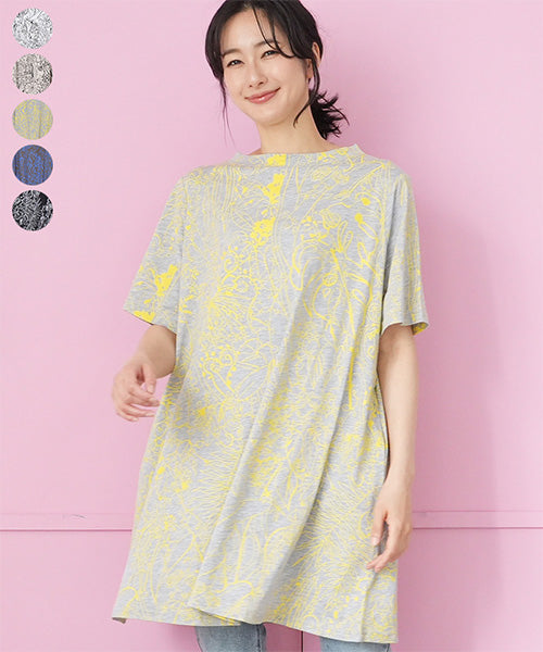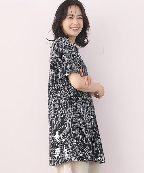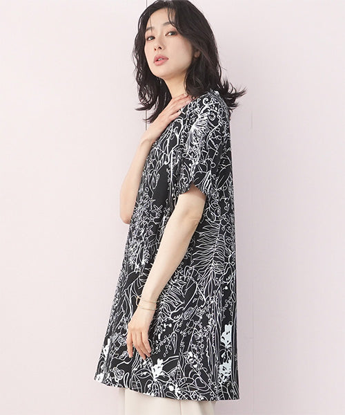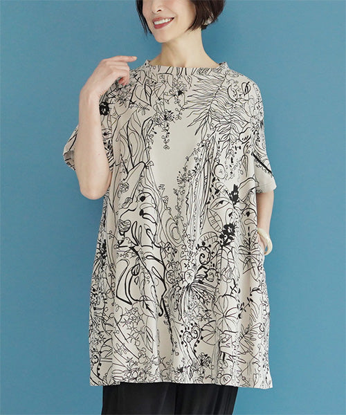 繊細なラインで描かれたボタニカルプリントが、落ち着いた大人のファッションにピッタリなチュニックです。