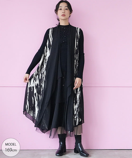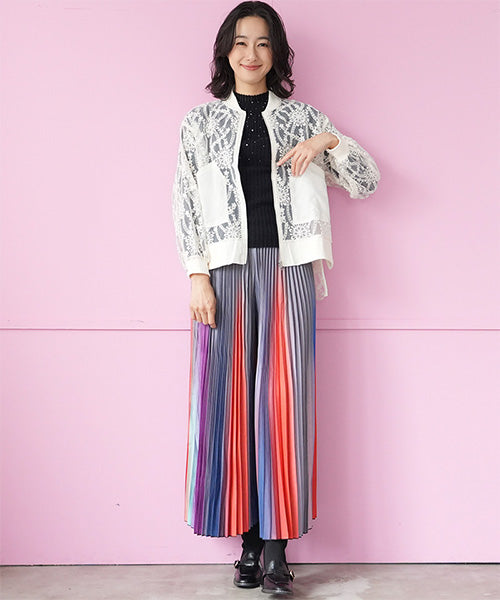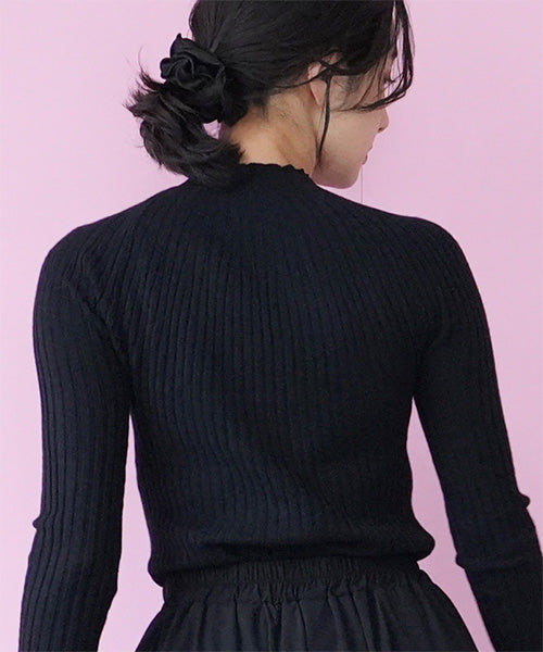 流動的なリブデザインで華奢見えが叶い、女性らしさをプラス。