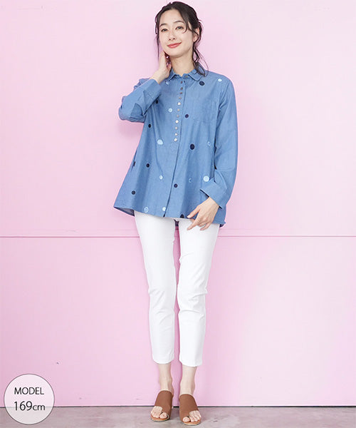綿100%ラウンド刺繍飾りボタン付きシャツブラウス 55-0093|40代 50代 60代 大人の女性に向けた 銀座発 ミセス 婦人服 レディースファッションブランド|コイビトミサキ公式通販|ファッションヴィレッヂ