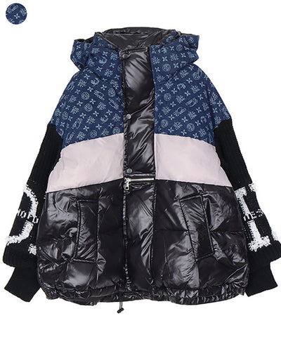 デニム×ニットコンビフード付きダウンジャケット 06-2939