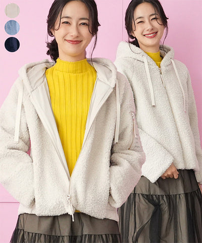 ボア切替キルティングフード付きジャケット 33-0436