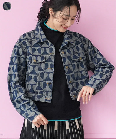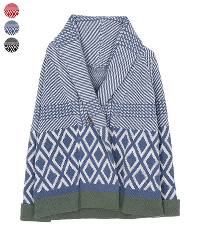 ジオメトリック柄ショールカラーニットジャケット 36-1794