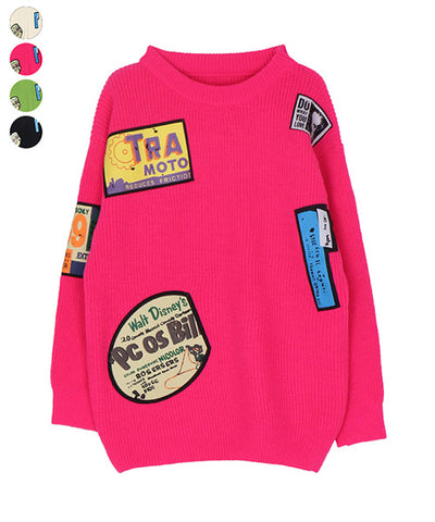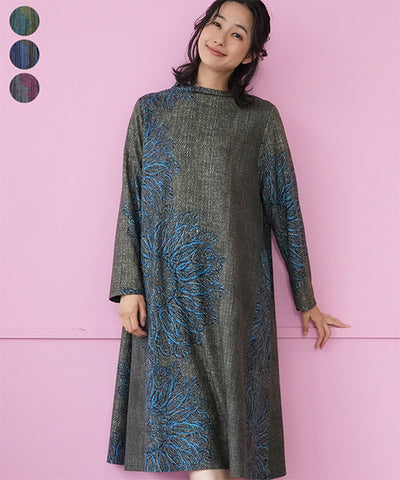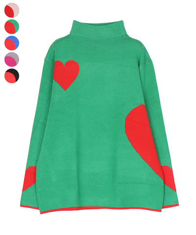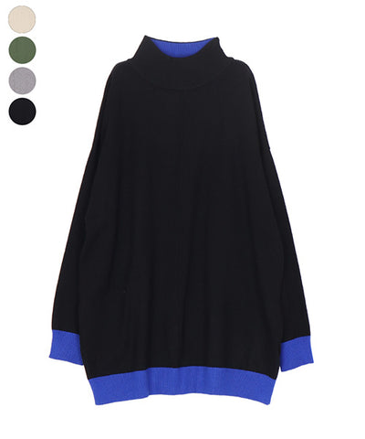 前後リバーシブルジオメトリック柄ハイネックワイドニット 36-1672