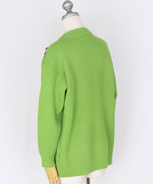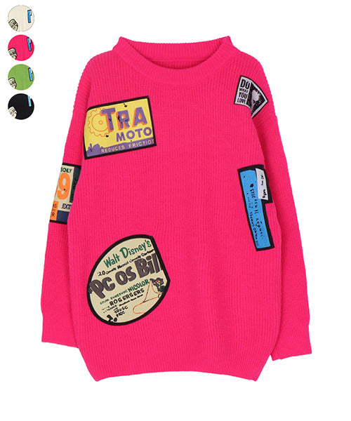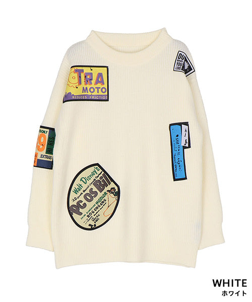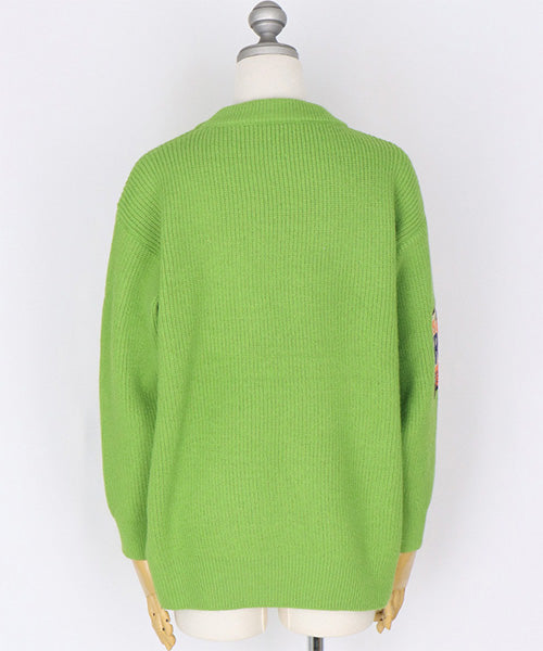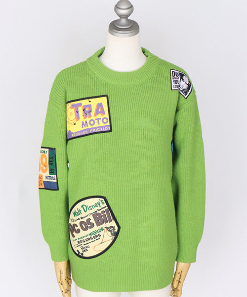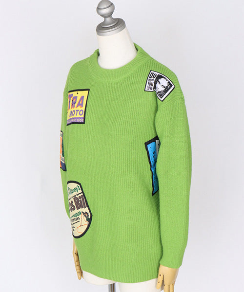 ポップなワッペンを散りばめた、遊び心あふれるデザインニット。 程よくゆとりのあるシルエットで、リラックスして着用していただけます。 柔らかくふんわりとした風合いで、見た目にもあたたかいです。 着るだけでコーディネートの主役になる存在感たっぷりの1枚です。