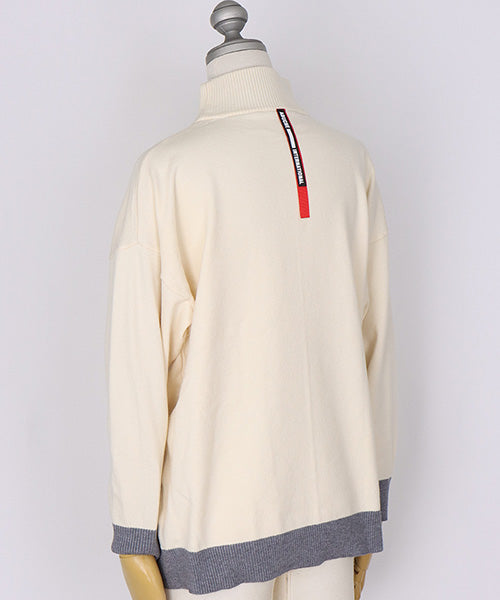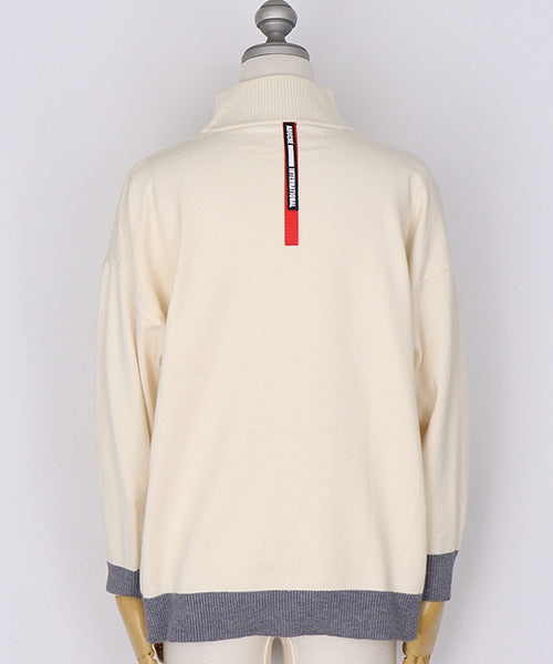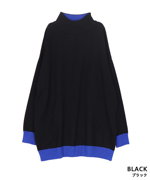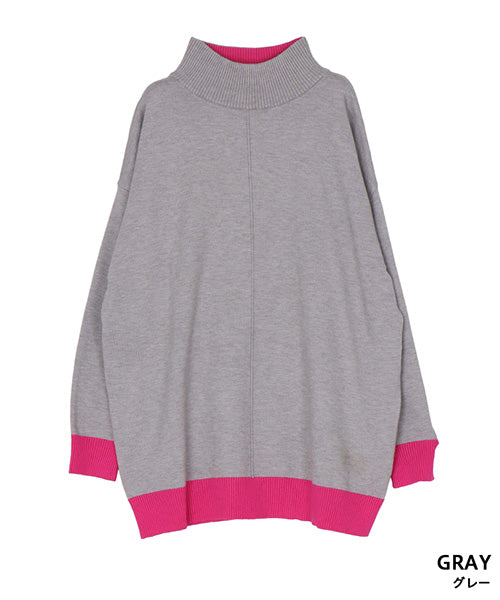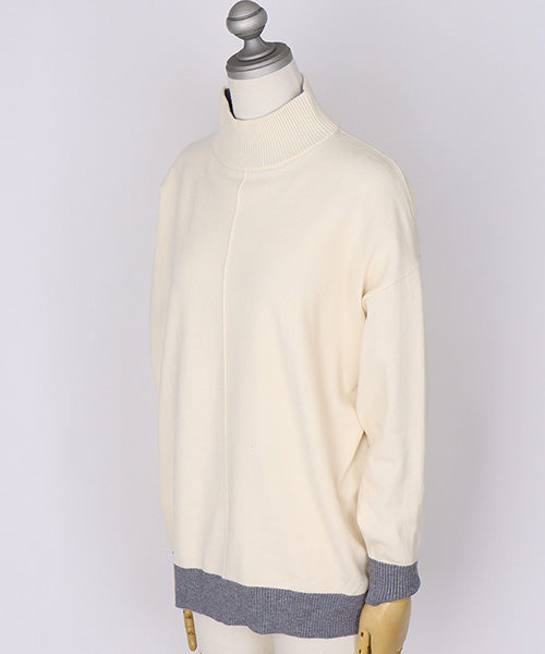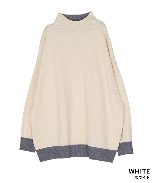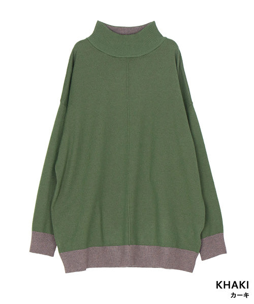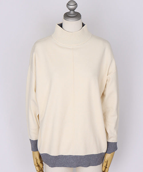 落ち着いた配色が上品なハイネックニットプルオーバー。