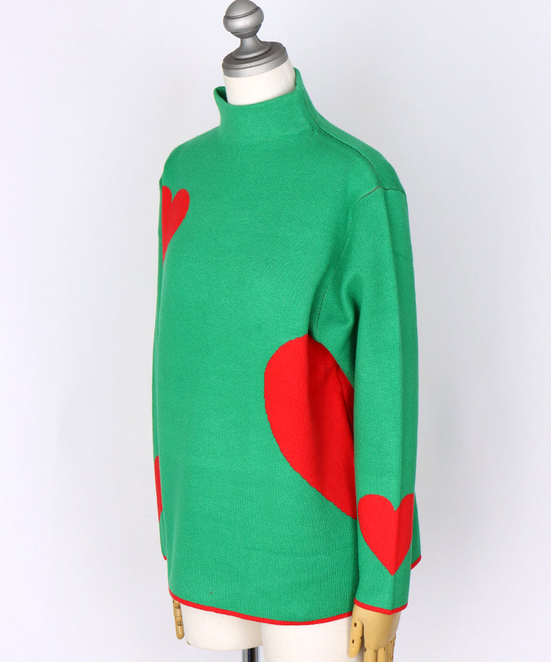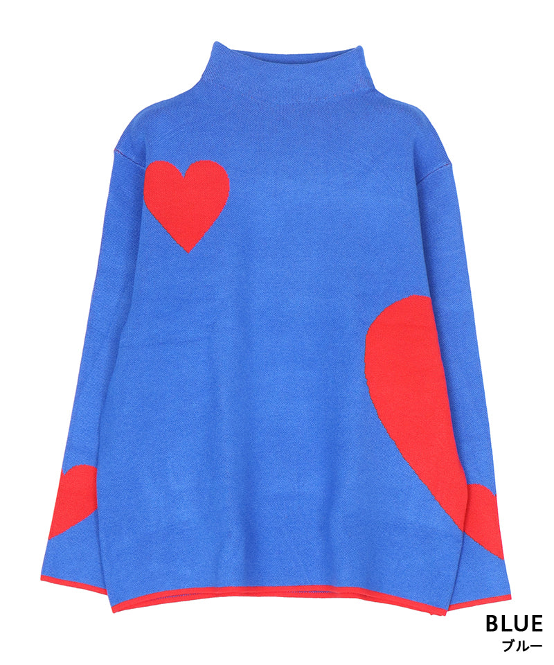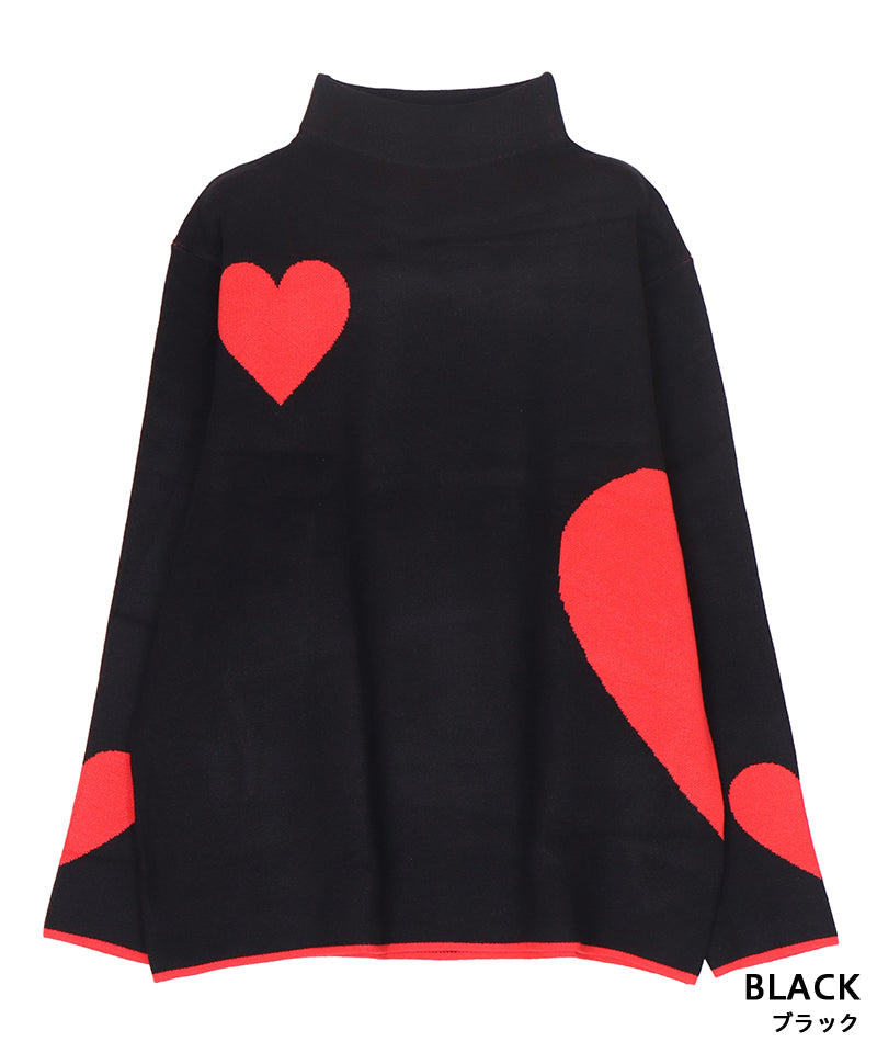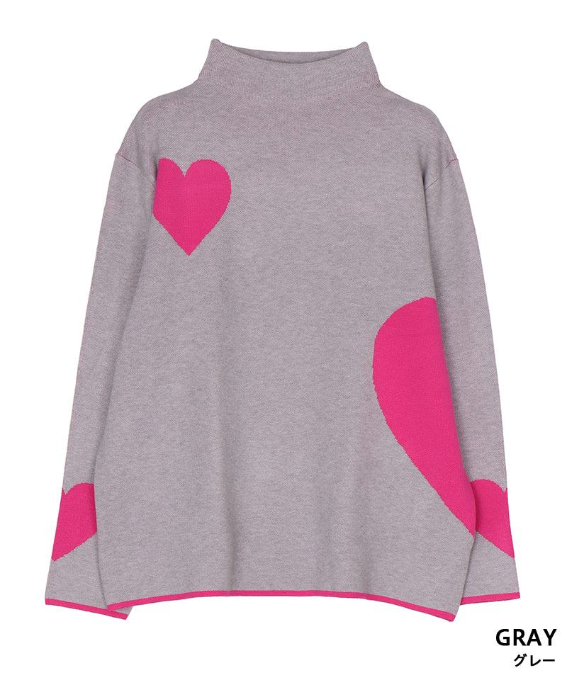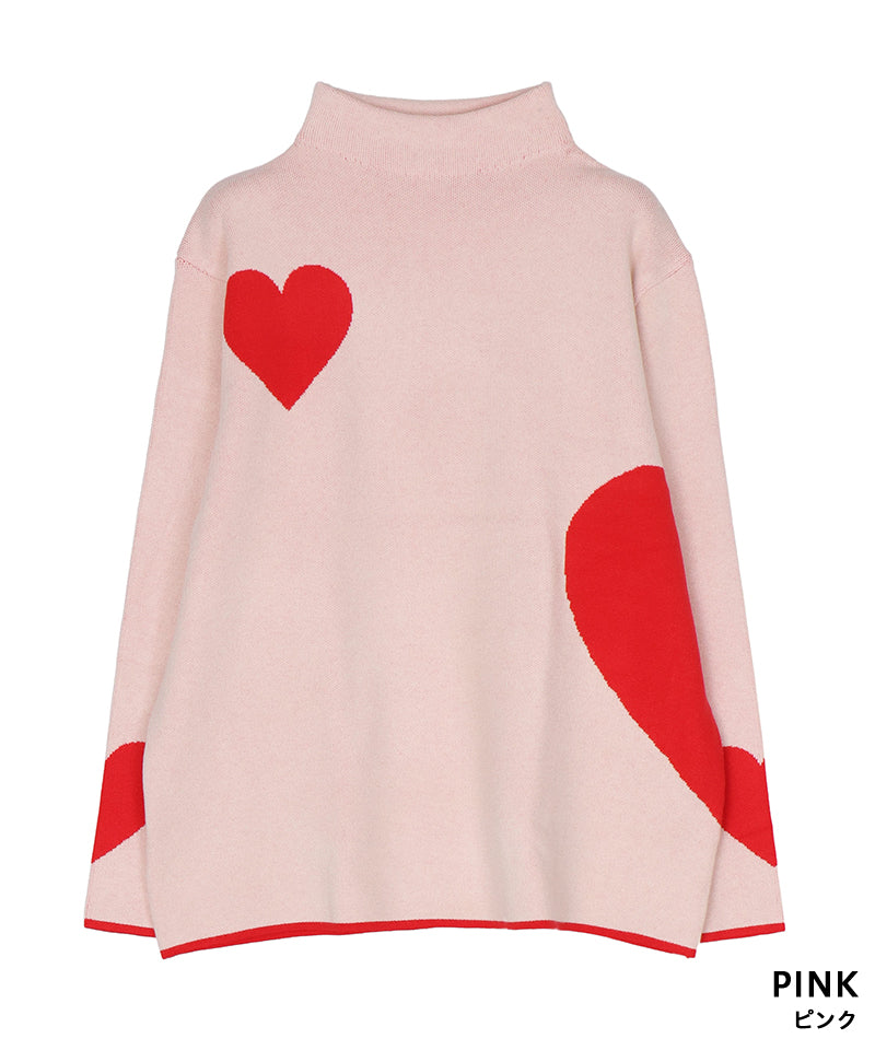 ハート柄を散りばめた、遊び心あふれるニットプルオーバー。