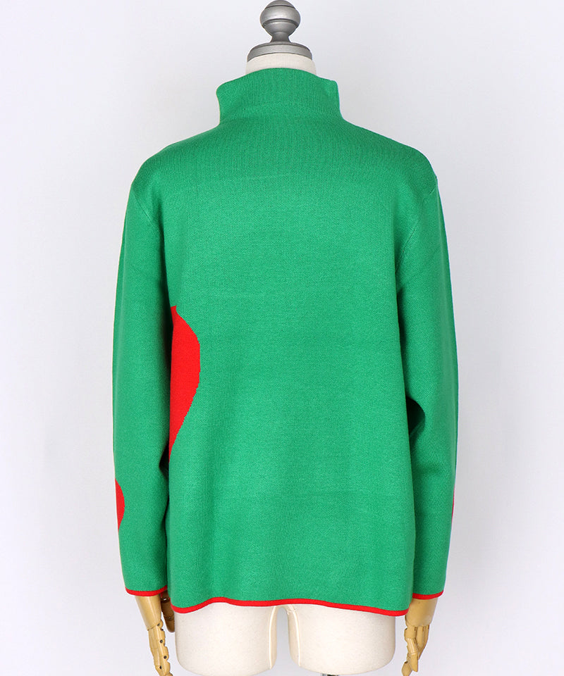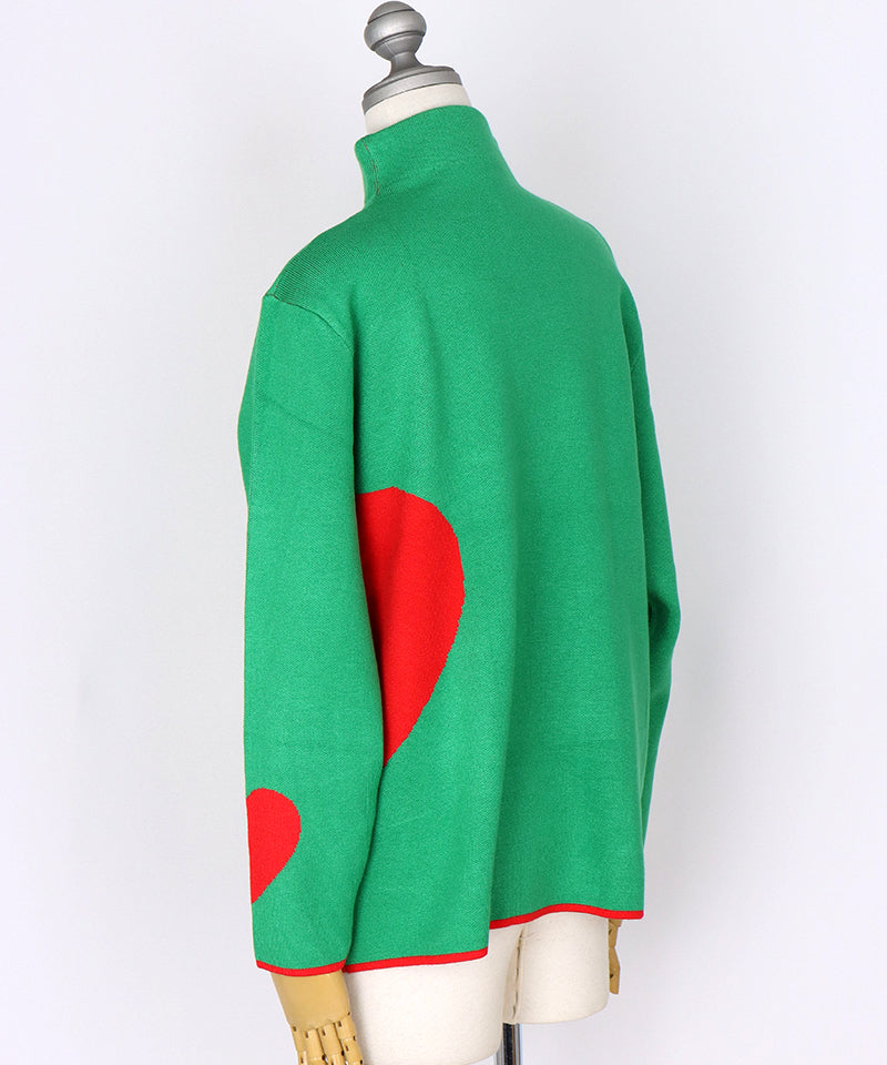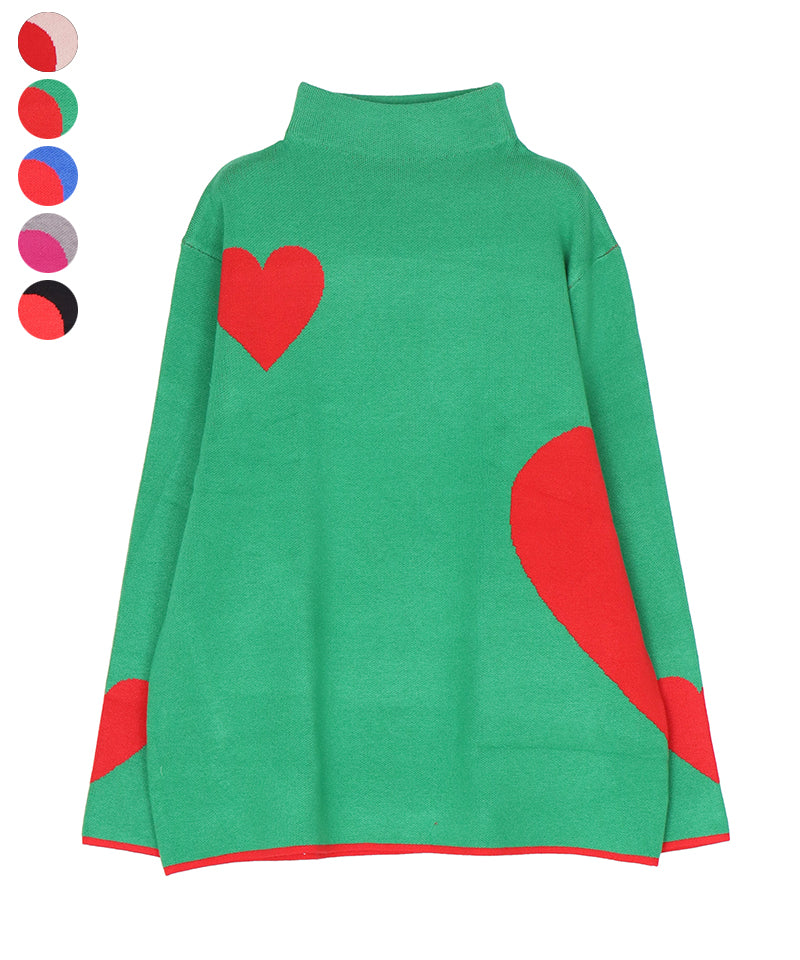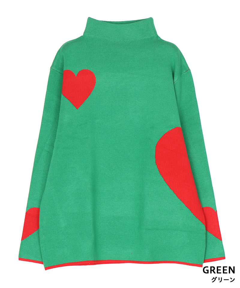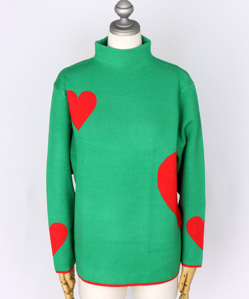 ハート柄を散りばめた、遊び心あふれるニットプルオーバー。