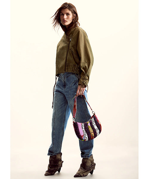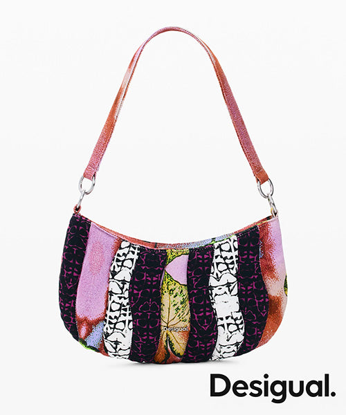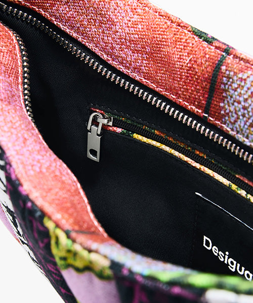 キャンバス地のミディアムサイズのショルダーバッグ。