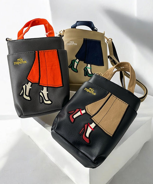 ワイドパンツとヒールのモチーフが印象的で、コーディネートに遊び心をプラス。