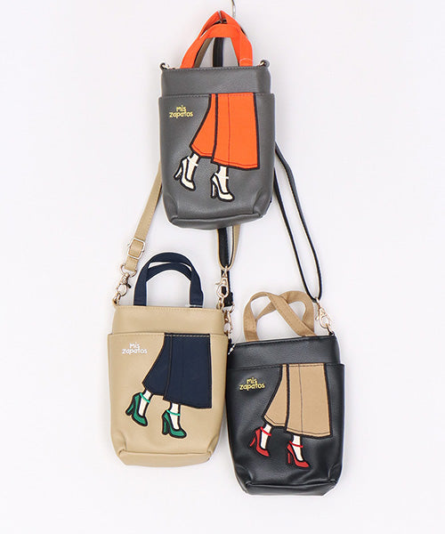 合成皮革を使用したポシェットタイプのショルダーバッグ。