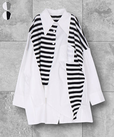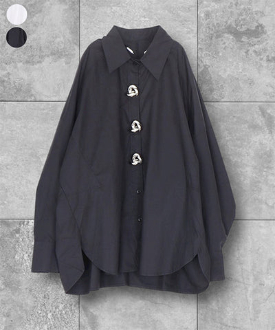 綿100%ビッグボタン変形切替ドロップショルダーシャツブラウス 06-2958
