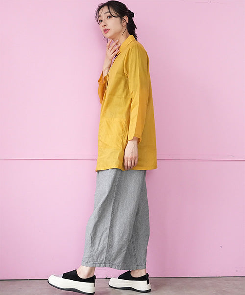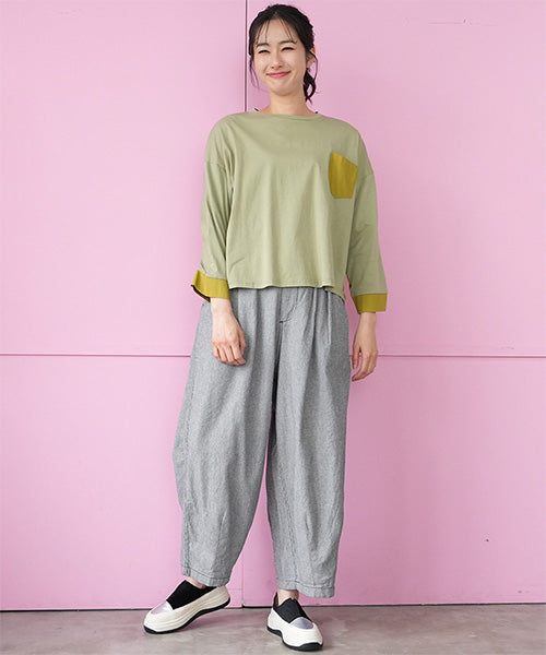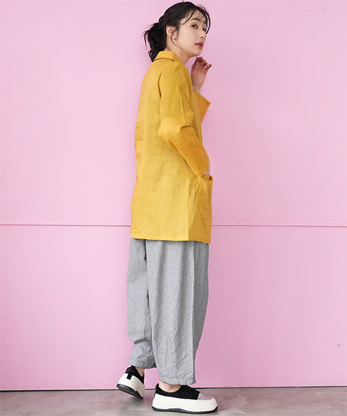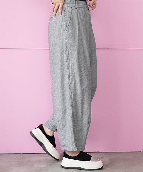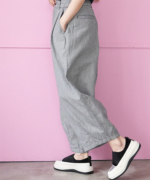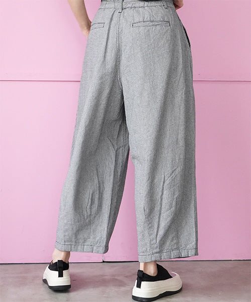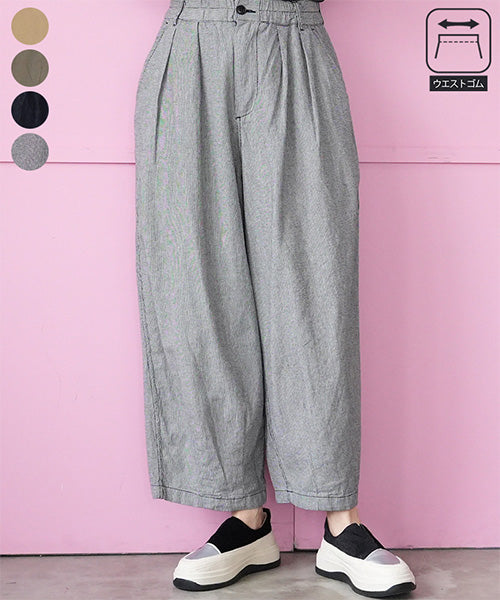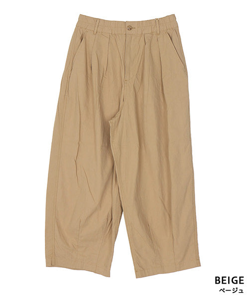 リラックス感ときちんと感を両立した、ウエストゴム仕様のワイドパンツ。 フロントに入ったタックが立体的なシルエットを作り、ゆったりとした穿き心地ながらもラフになりすぎない印象に仕上げました。 ウエストは総ゴム仕様で着脱も簡単、長時間の着用でもストレスフリーです。