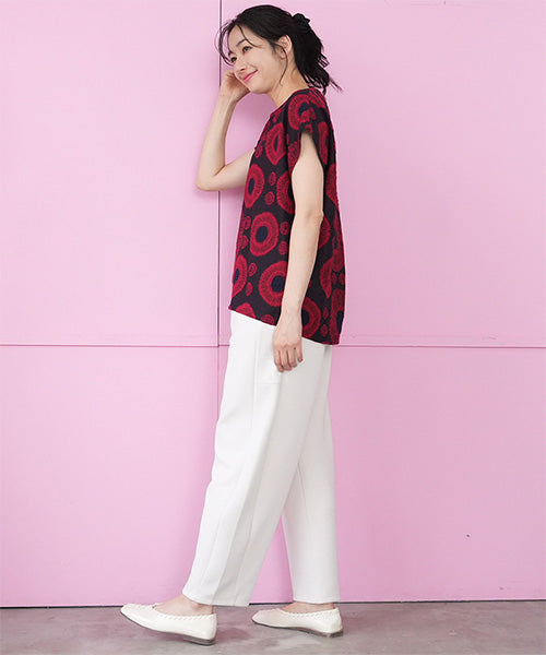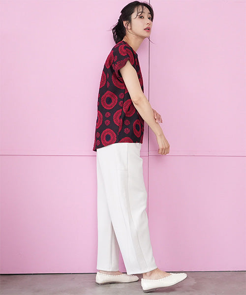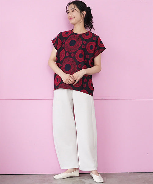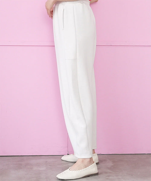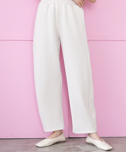 やわらかく空気を含んだような軽さが魅力の、エアリーダンボール素材を使用したカーブパンツ。 もっちりとした弾力がありながらも肌当たりはなめらかで、 長時間穿いてもストレスを感じにくい快適な着心地です。 シルエットは、腰まわりから太ももにかけてゆとりを持たせ、 裾にかけて緩やかにカーブを描くデザイン。 身体のラインを拾いにくく、体型カバーと美シルエットを両立します。 気になるヒップや脚のラインをさりげなく包み込み、大人の女性が安心して穿ける一本。 両サイドに入った切り替えデザインが、縦のラインを強調し、 シンプルながらも立体感と洗練された印象をプラス。 ベーシックなトップスを合わせるだけで、コーディネートが様になります。 ウエストはリラックス感がありながらも、だらしなく見えない設計。 カットソーやニットはもちろん、シャツやジャケットと合わせればきれいめにも対応でき、 オン・オフ問わず活躍する着回し力の高さも魅力です。 季節を問わず取り入れやすい素材感で、 デイリー使いからお出かけまで幅広いシーンに対応。 ラクなのにきちんと見えを叶える、大人のための上質カーブパンツです。