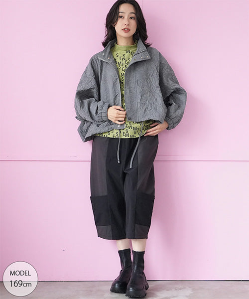 トレンド感のあるショート丈と、ドローコード付きの裾でシルエット調整も自在。