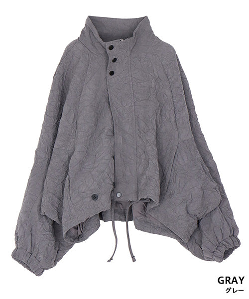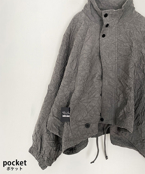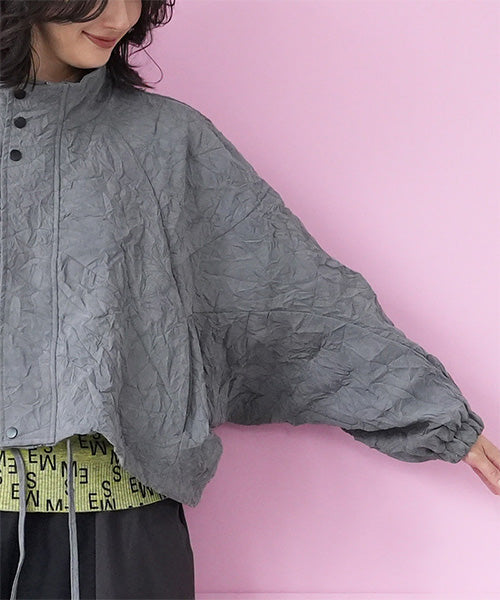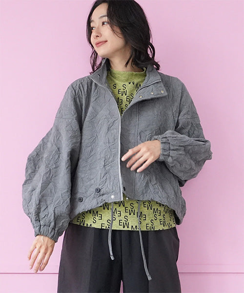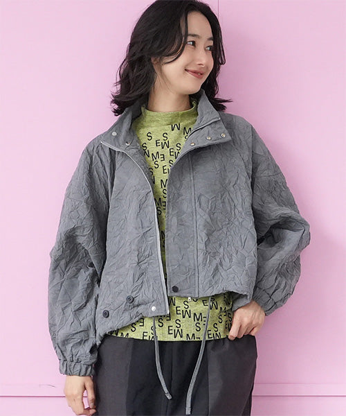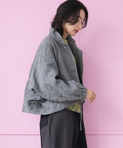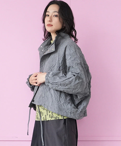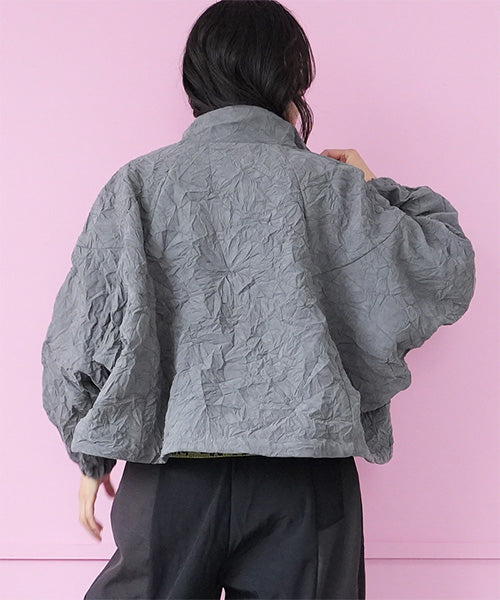 シワ加工が独自の存在感を放つ、モードなスタンドカラージャケット。