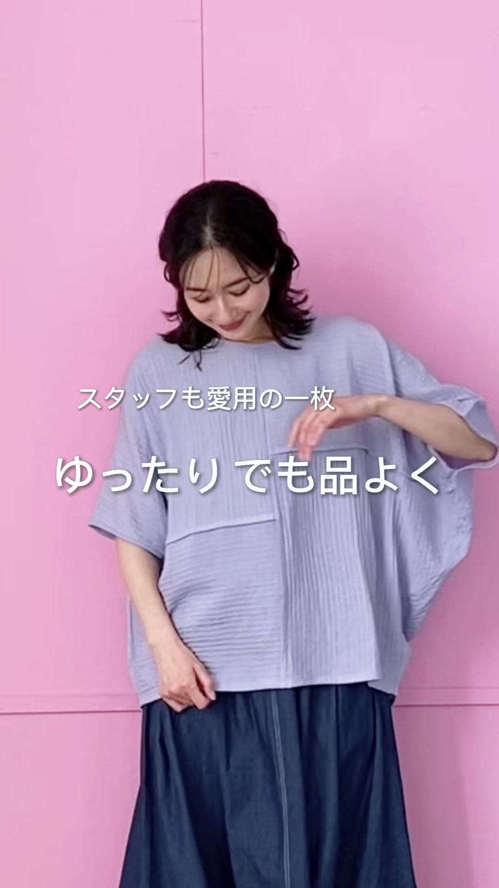 【商品説明】ストライプとボーダーの切り替えデザインがすっきりと魅せてくれるかぶりのブラウス。 ドルマンスリーブにビッグシルエットが体型カバーしながらもオシャレな印象を与えてくれます。 凹凸感のある素材で涼しく着用していただけます。