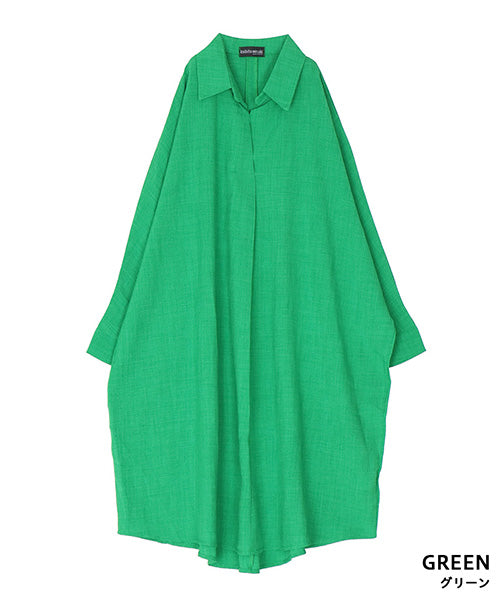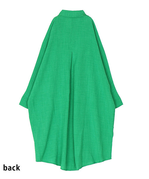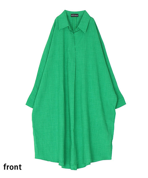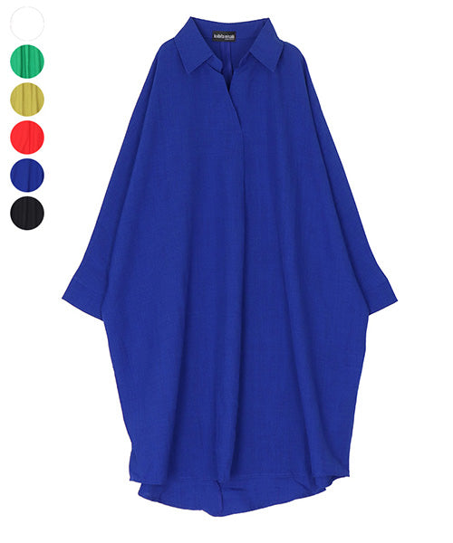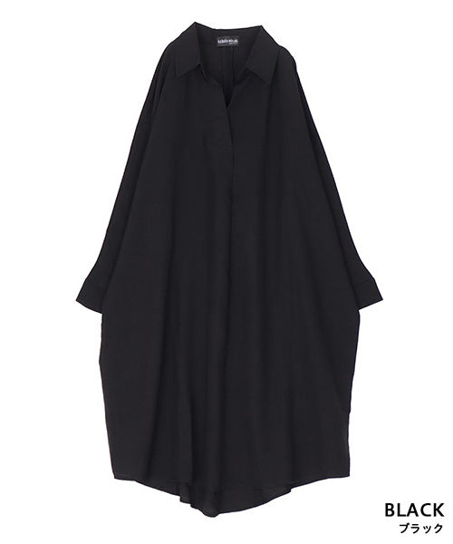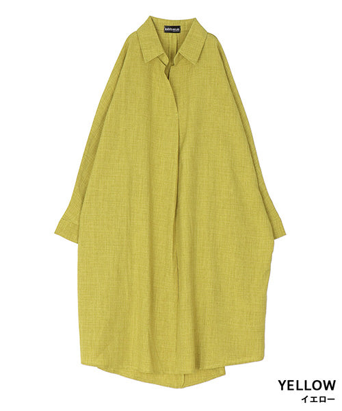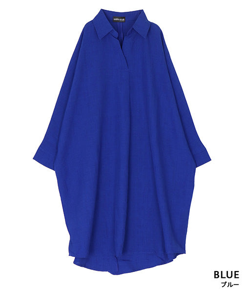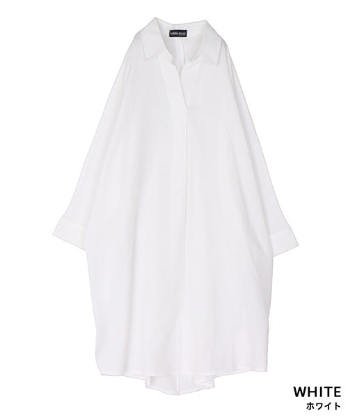 前後にタックの切り替えを施し、ゆとりあるワイドシルエットのチュニックブラウスです。 綿混のサラサラとした肌触りで、心地良い着用感です。 スキッパータイプの衿はネックラインを美しく見せ、大人のカッコ良さを表現してくれます。 フィッシュテール加工で、後ろ姿もスッキリと綺麗見えに。