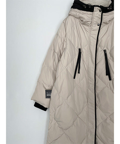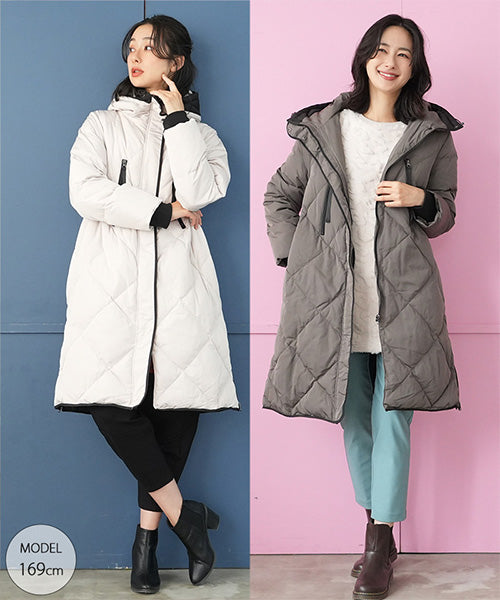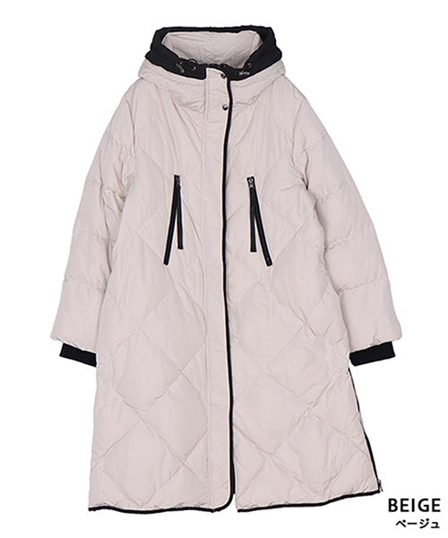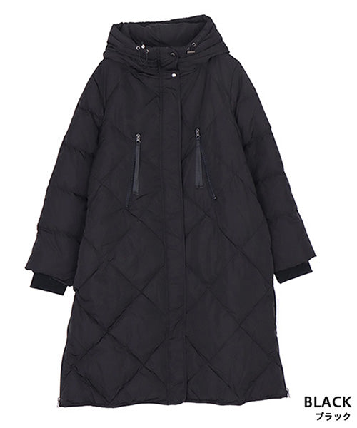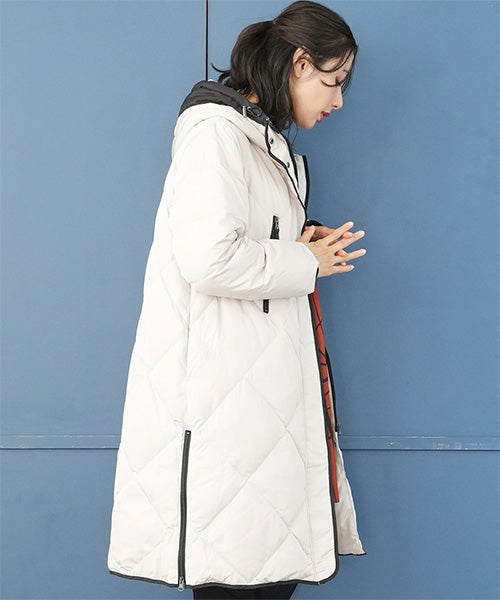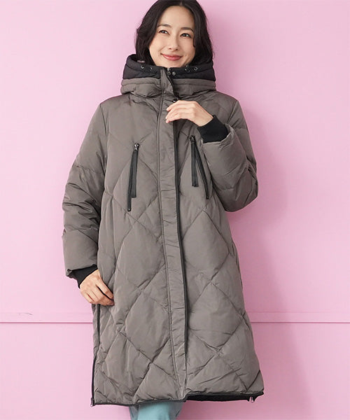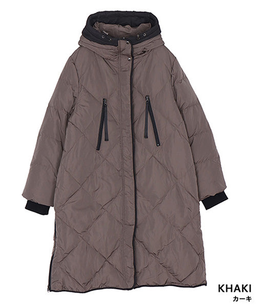 フロントのフェイクファスナーが目を惹くダウンコートです。 中にダウンとフェザーが入っているので保温性に優れ、快適に着用いただけます。 膝まで隠してくれる丈感でボディラインをしっかりとカバー。 キルティング×パイピングが今どきな主役級アイテムです。