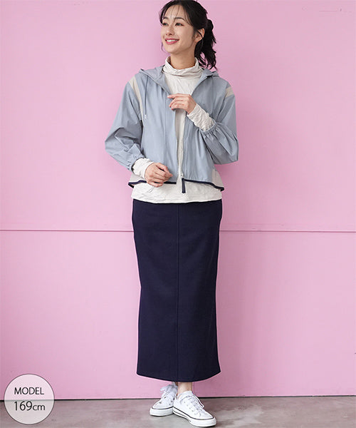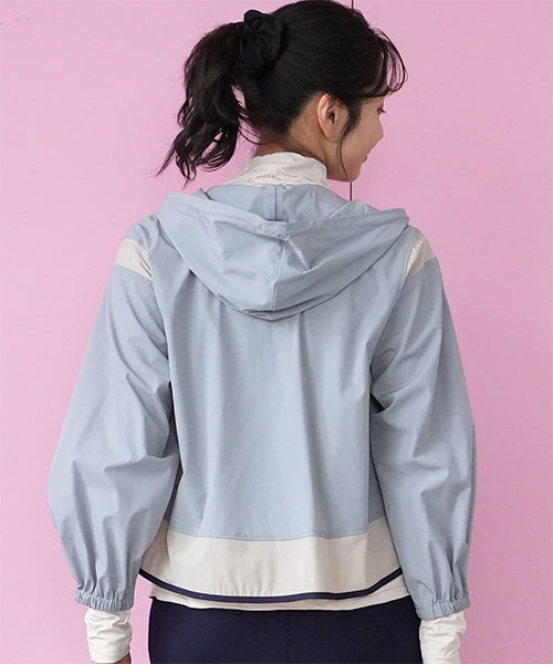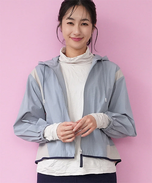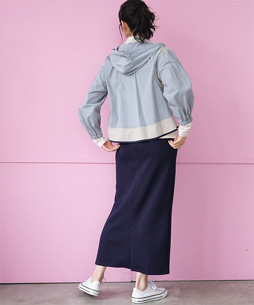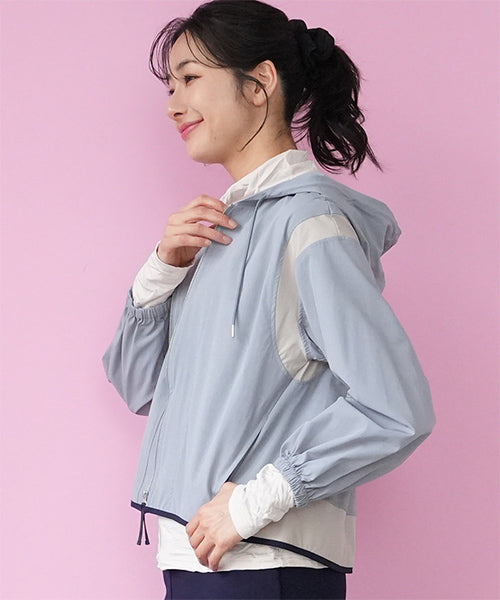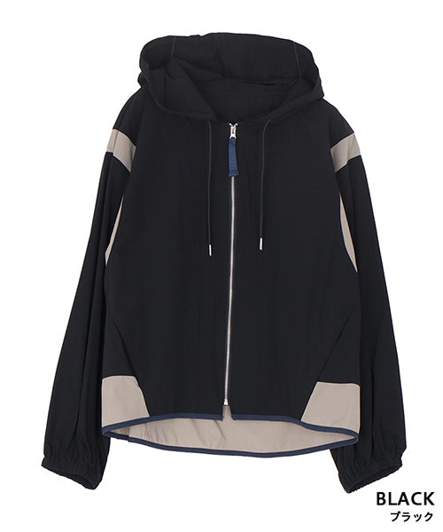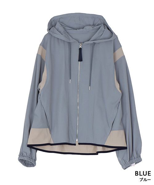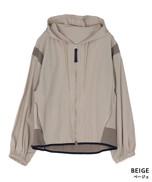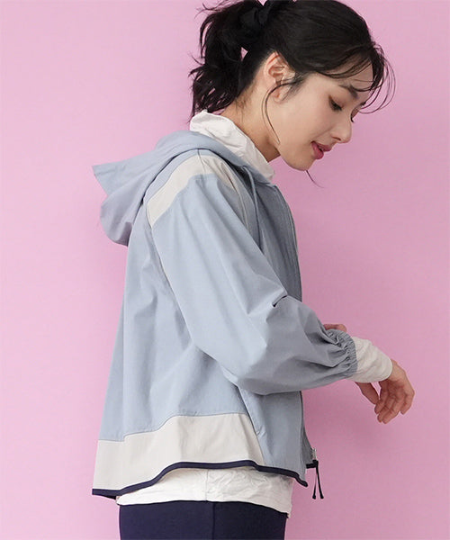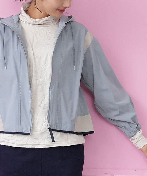 ナイロンの軽い風合いとストレッチの効いた素材が、とても心地良いフード付きジャケットです。 アームホールと裾に異色切り替えを施し、パイピングでぐるりと仕上げた凝ったデザインになっています。 軽量でシワにもなりにくいため、持ち運びに非常に便利なアイテムです。 季節の変わり目の羽織りものとしても大活躍です。