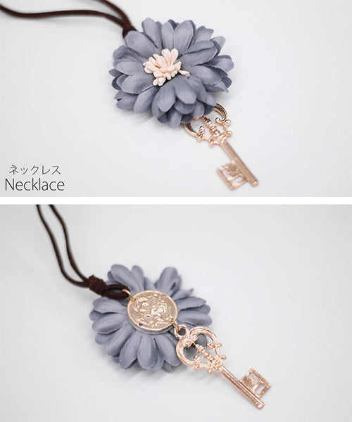 付属のお花と鍵モチーフのネックレスもスタイリングのアクセントに。