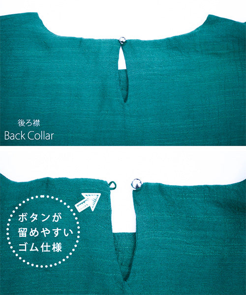 背中に付いた 丸いボタンも可愛らしい印象を引き立てます。
