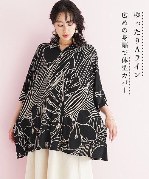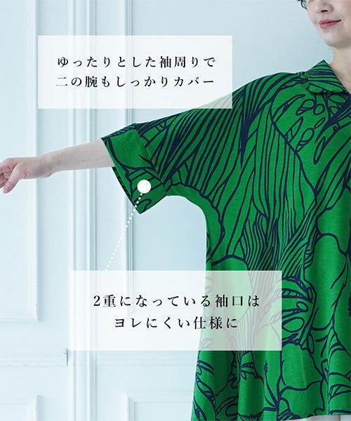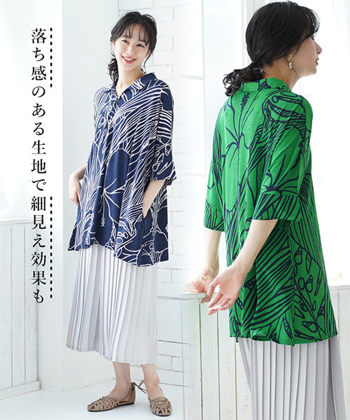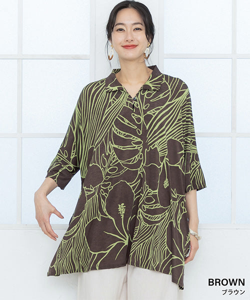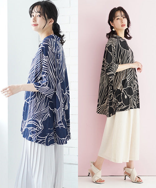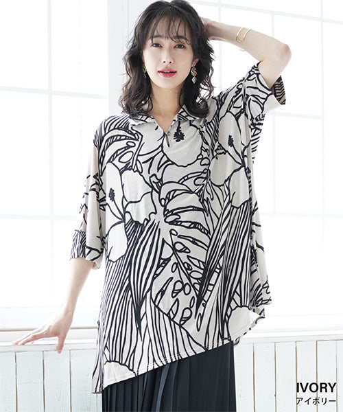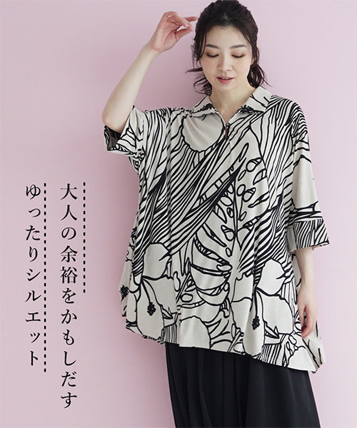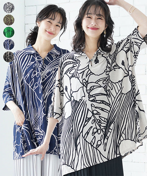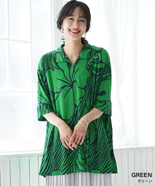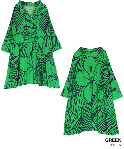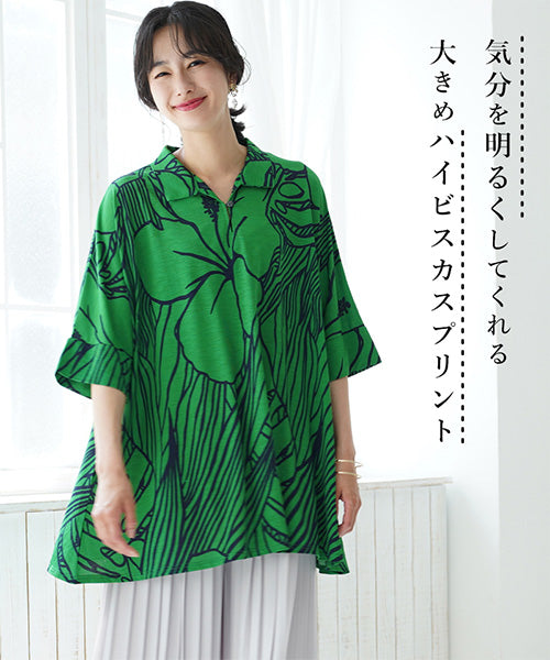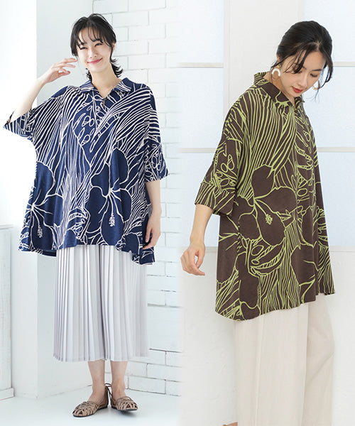 大きなハイビスカス柄がナチュラルでリゾートルックな印象のプルオーバーです。