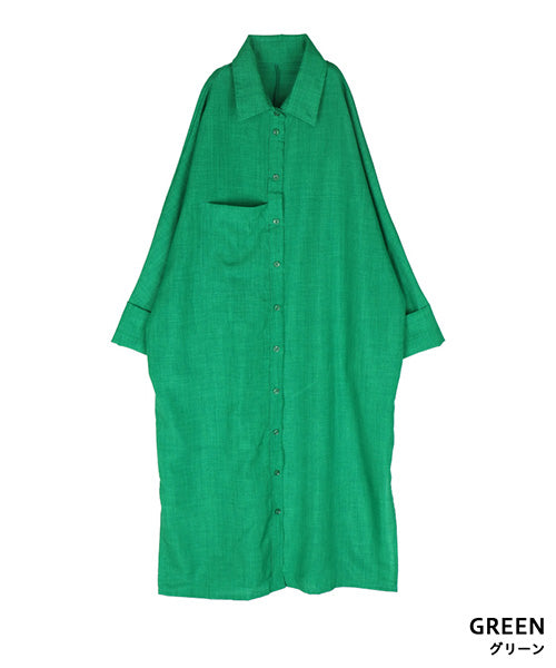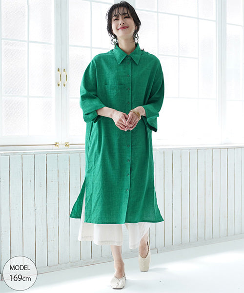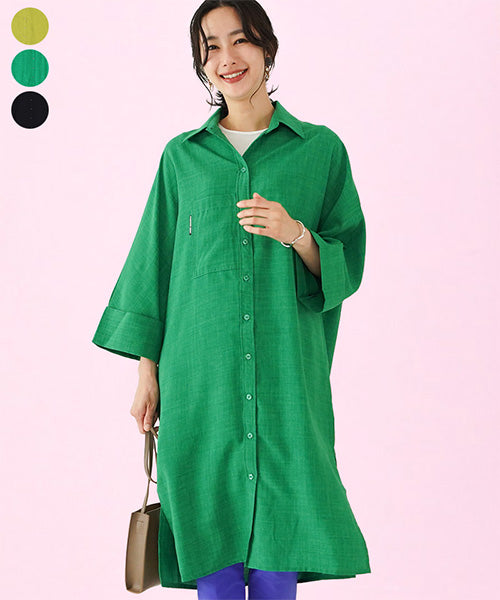 ロング丈でワイドシルエットなので、身体のラインを拾いにくく気になるボディラインをしっかりとカバー。