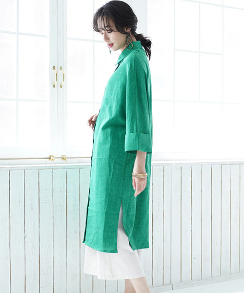 前を開けて羽織りとしてもお使いいただけるので、様々な着こなしが楽しめる一着です。