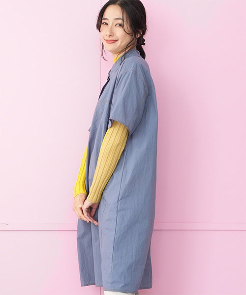 配色ステッチがさりげないアクセントとなったワンピース。 ゆったりとしたコクーンシルエットが身体のラインを拾わず、リラックス感のある着心地を叶えます。 フロントは比翼風の前立て仕様で、カジュアルすぎず大人らしい印象に。 胸元の両サイドの大きめポケットは実用性もあり、デイリー使いにぴったりです。