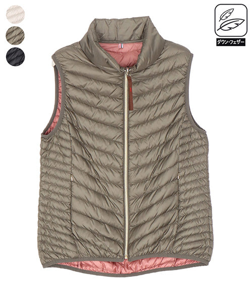 驚くほど軽くて暖かい、デイリー使いに最適なダウンベスト。 シルエットをすっきり見せるV字キルトがスタイルアップを叶え、薄手ながら保温性もしっかり確保。 アウターの中にすっと収まりやすく、冬のレイヤードに大活躍します。 裏地との配色デザインも、着脱時にさりげなく映えます。