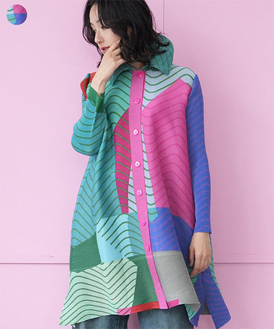 カラー配色プリーツ加工シャツワンピース 06-2895