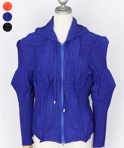 プリーツ加工フード付きジップアップショートジャケット 06-2929