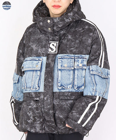 デニム切替デザインフード付きダウンミックスジャケット 06-2942