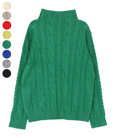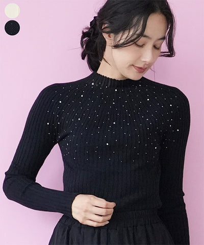 ラインストーン付ボトルネックリブニットプルオーバー 44-0194