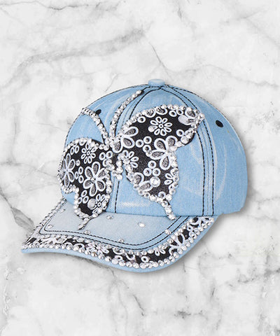 ビジュー&ラインストーンバタフライデニムキャップ 06-2968