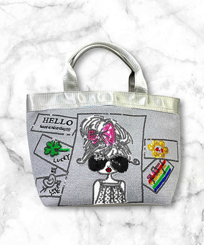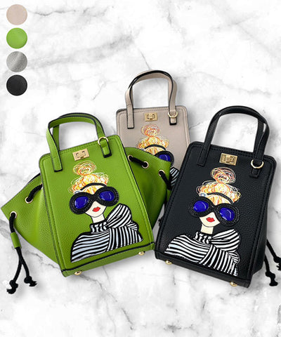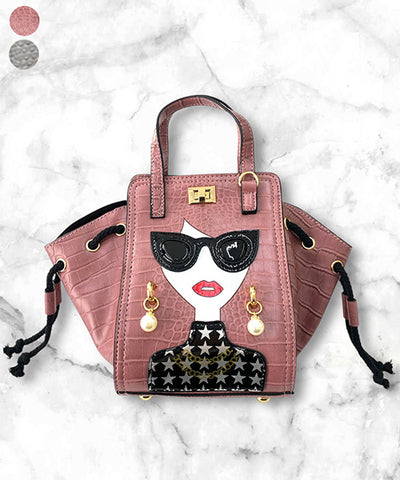 サングラスガールモチーフクロコ型押し2wayミニバッグ AM521