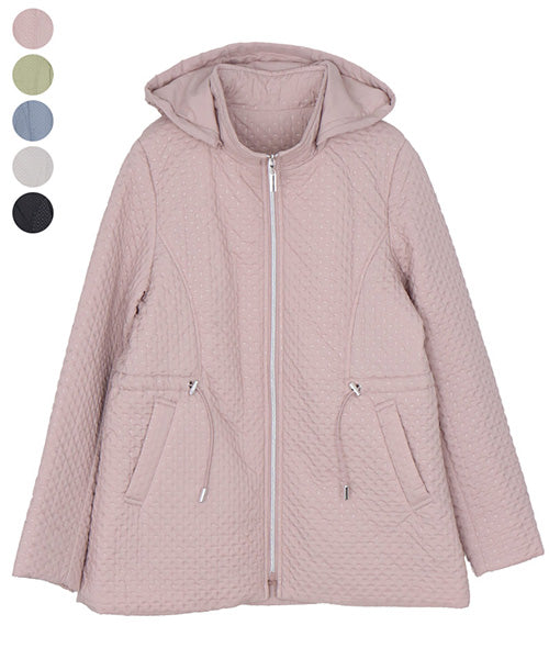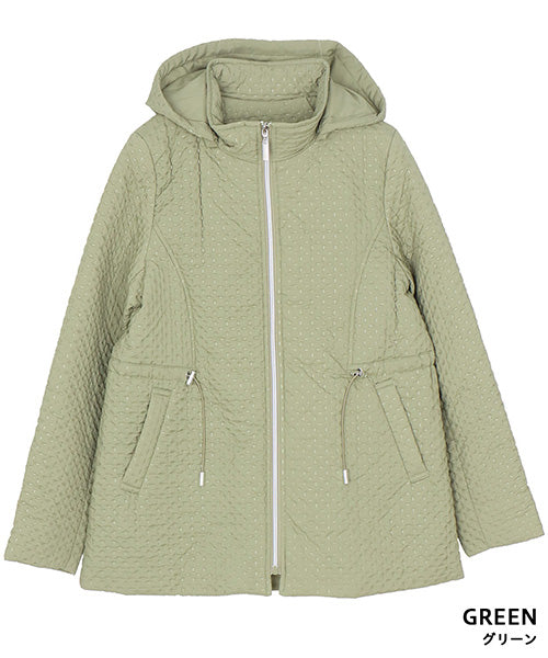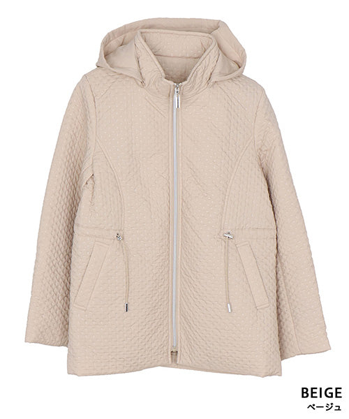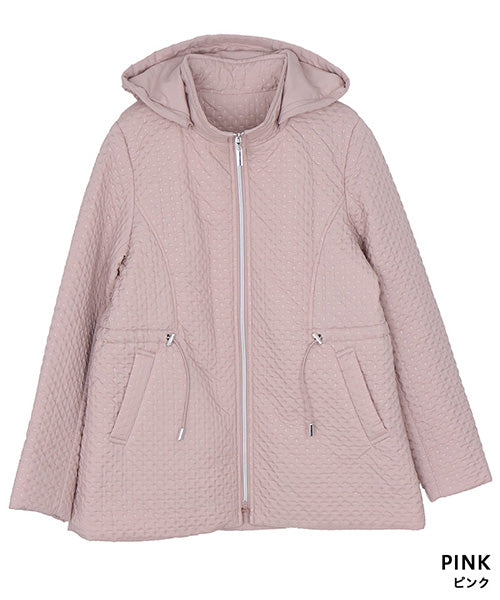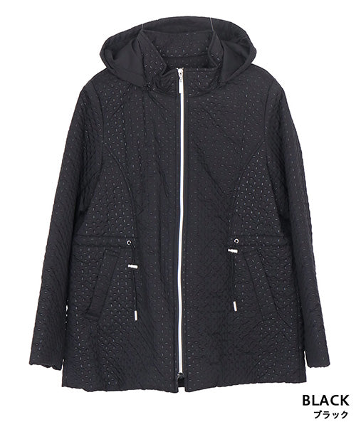縫い目のない特殊加工 “ピンソニックキルト” で仕上げた、軽くて柔らかな着心地が魅力のフードジャケット。
