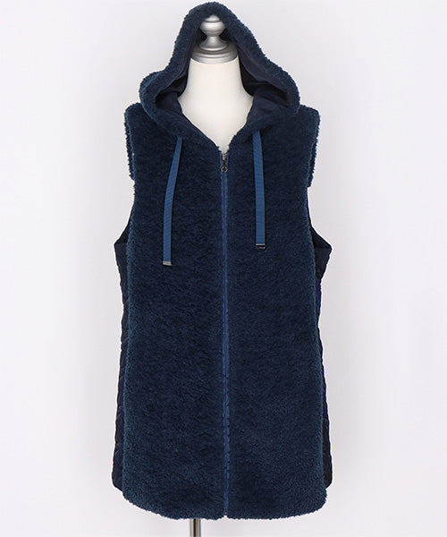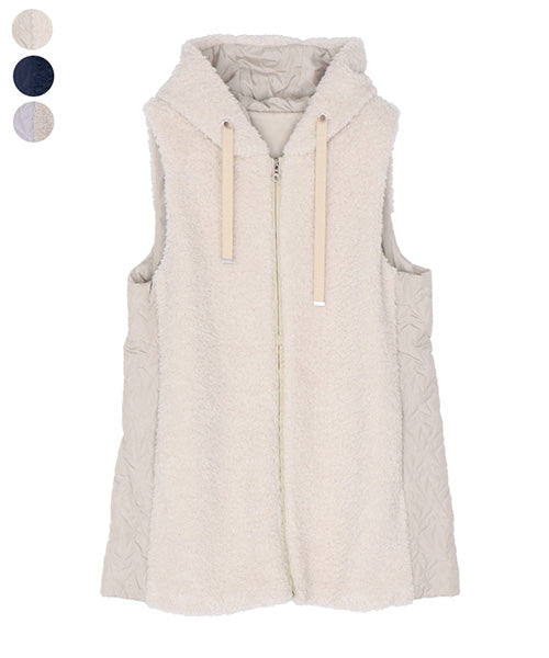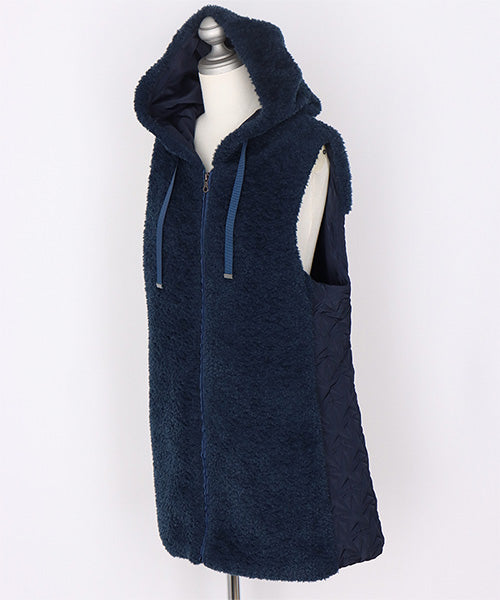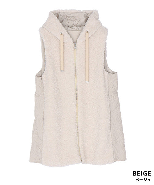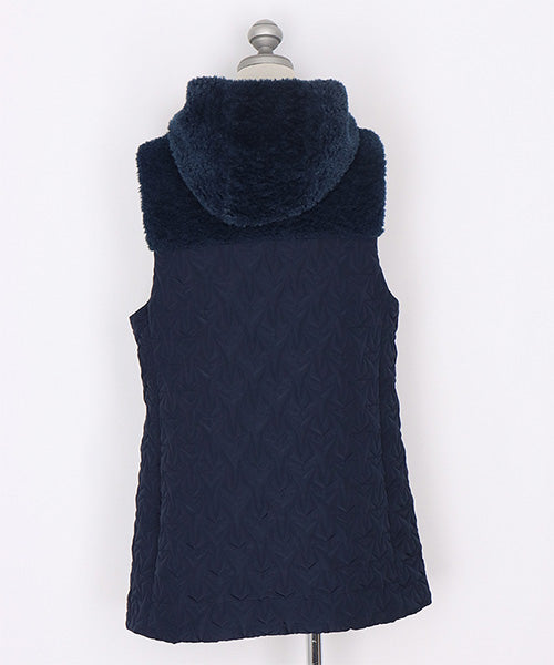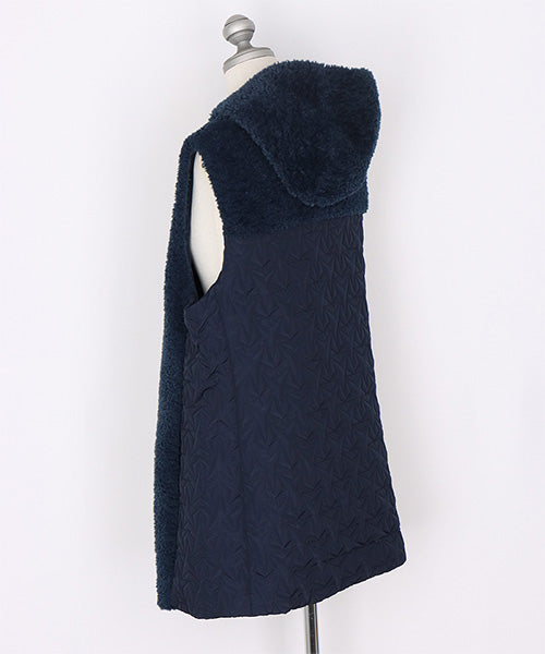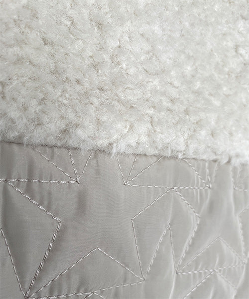 ふわふわのボアと、遊び心のある星柄キルトを組み合わせた見た目にも可愛いロングベスト。