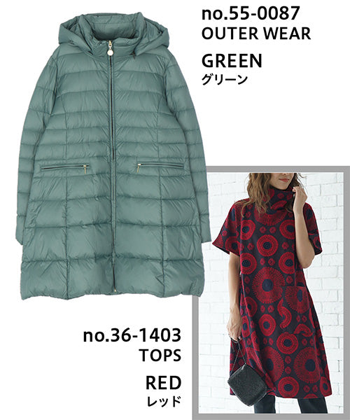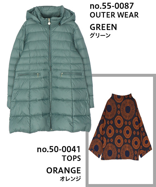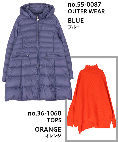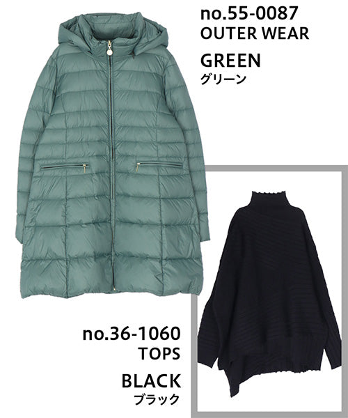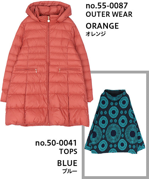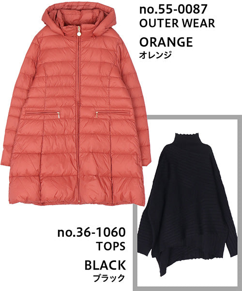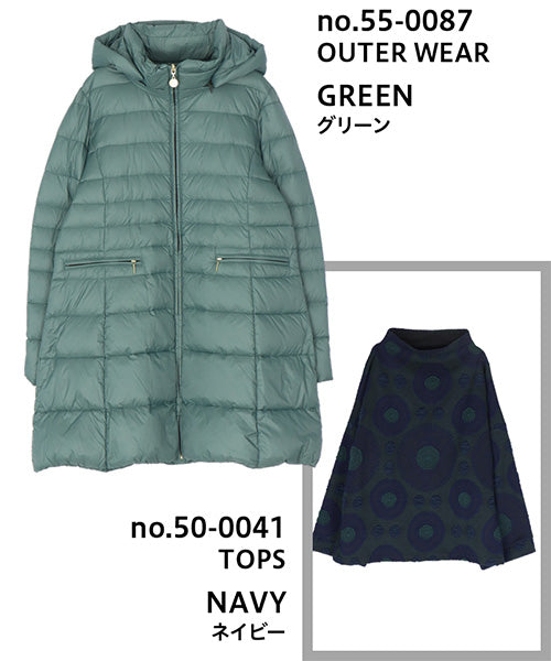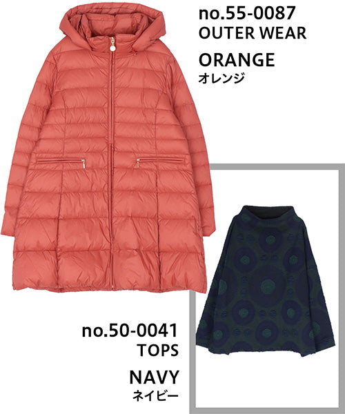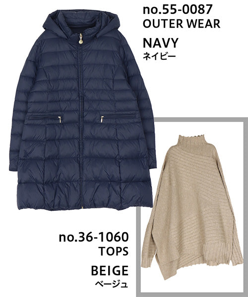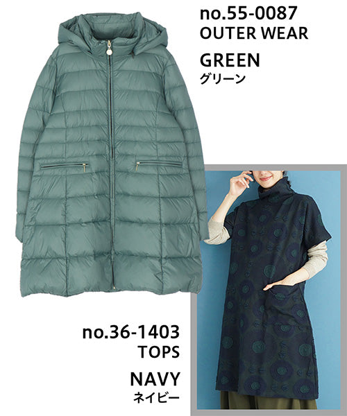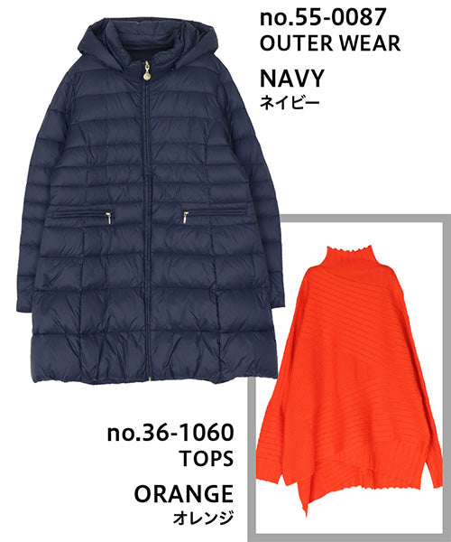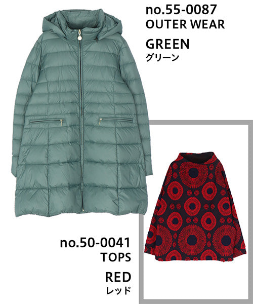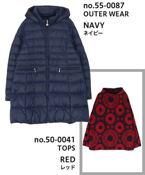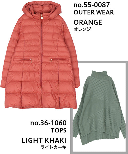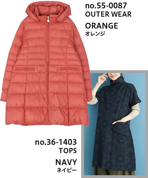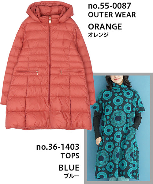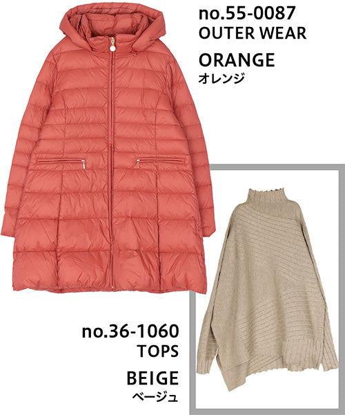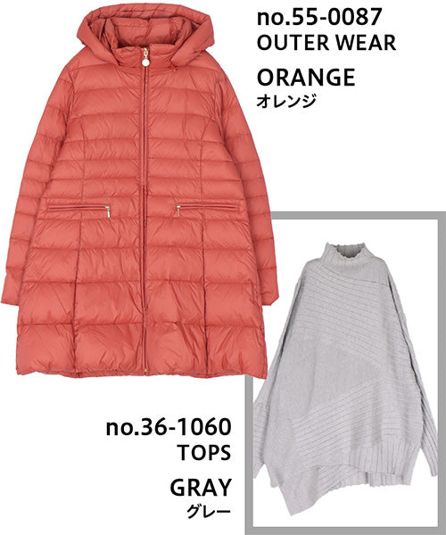 【55-0087】 表側 ナイロン100% 裏側 ナイロン100% 充填物 ダウン80% フェザー20% 中わた(フード部分) ポリエステル100%