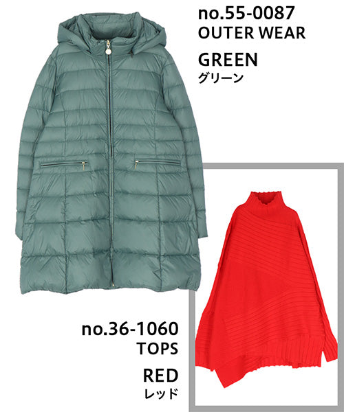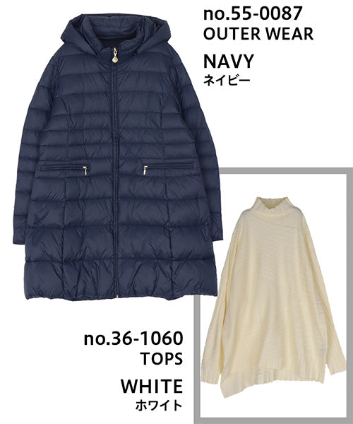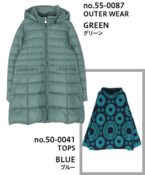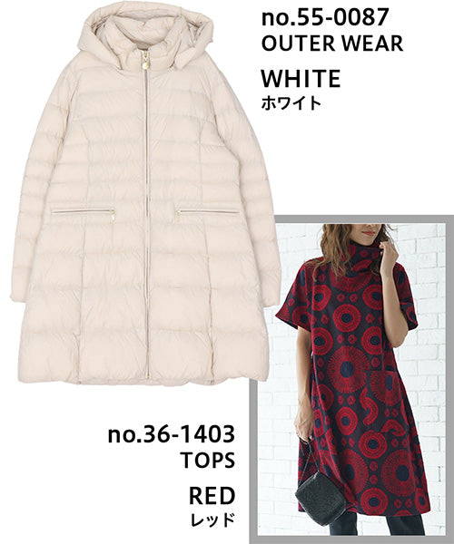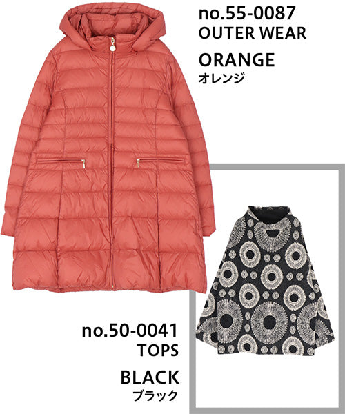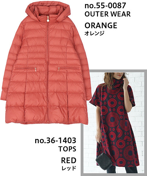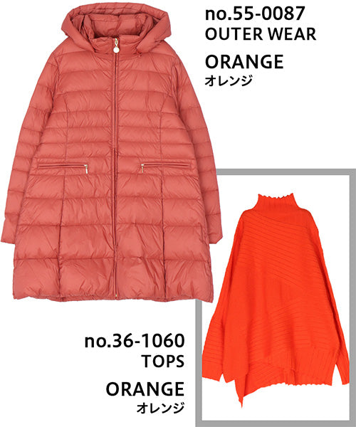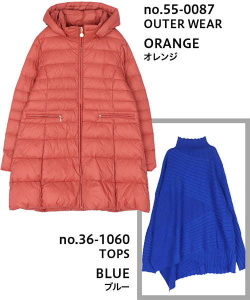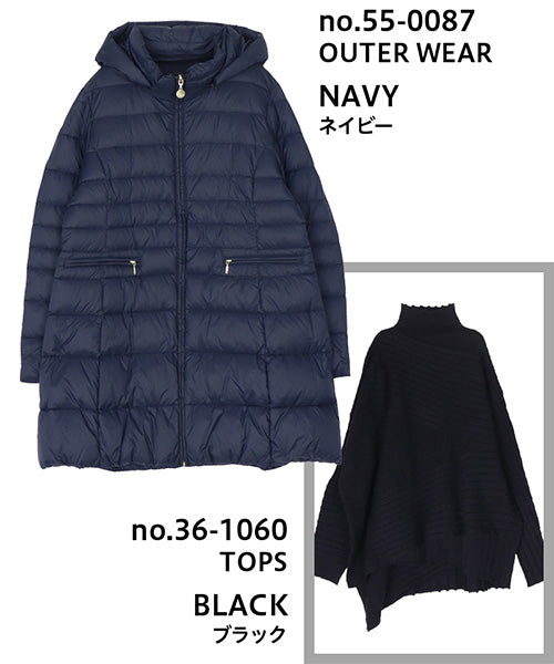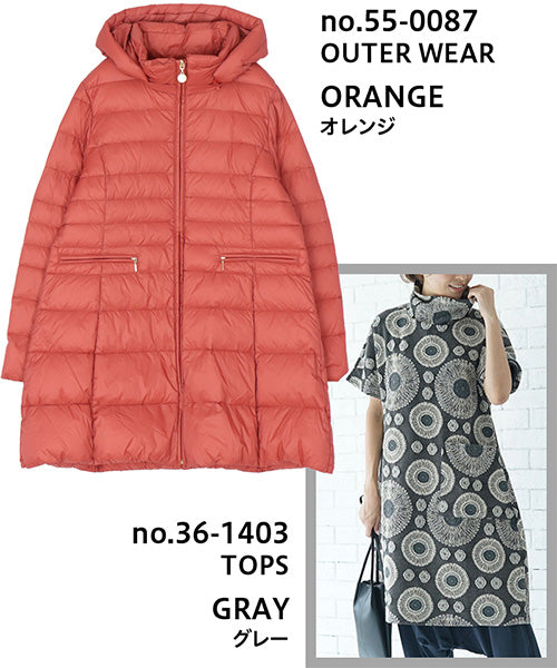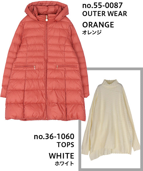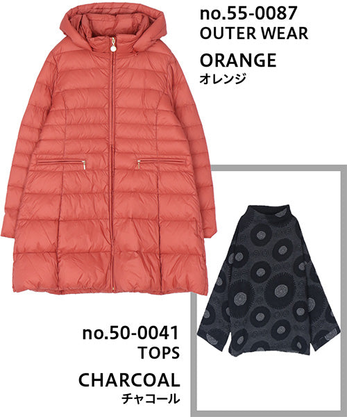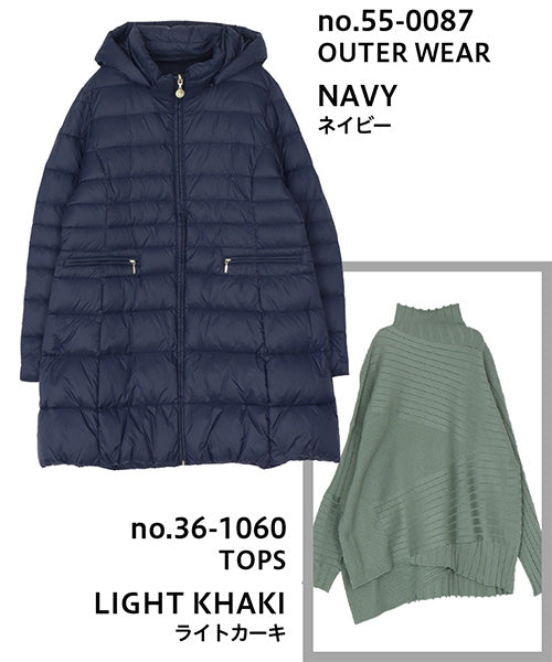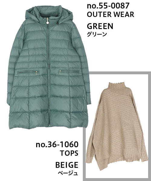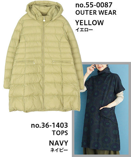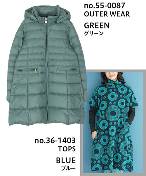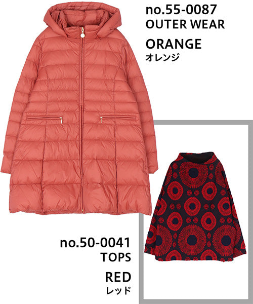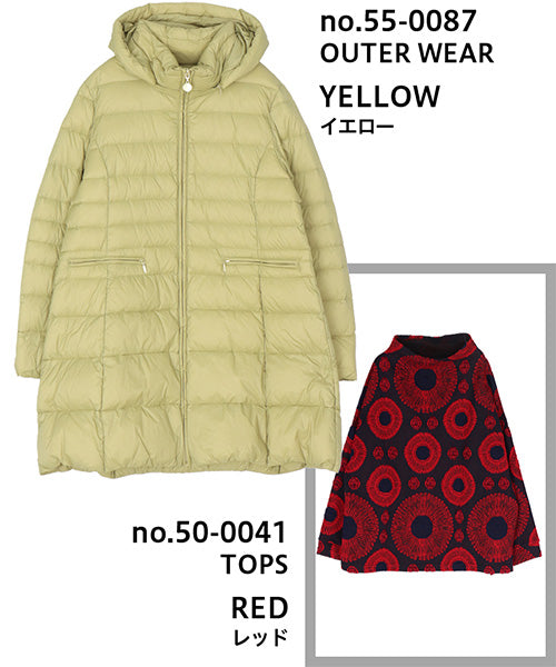【55-0087】 表側 ナイロン100% 裏側 ナイロン100% 充填物 ダウン80% フェザー20% 中わた(フード部分) ポリエステル100%