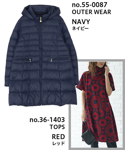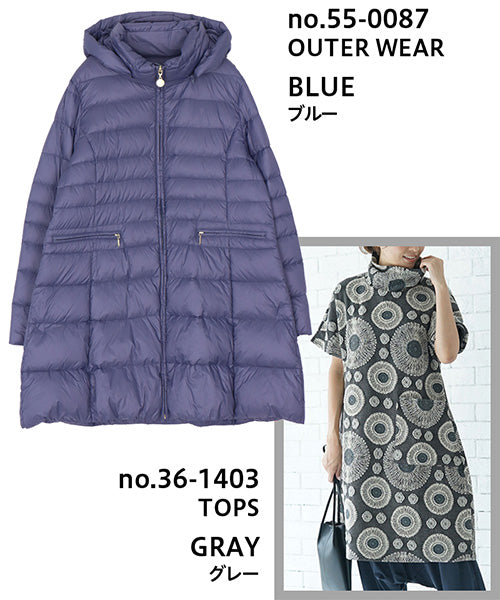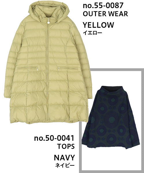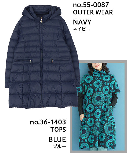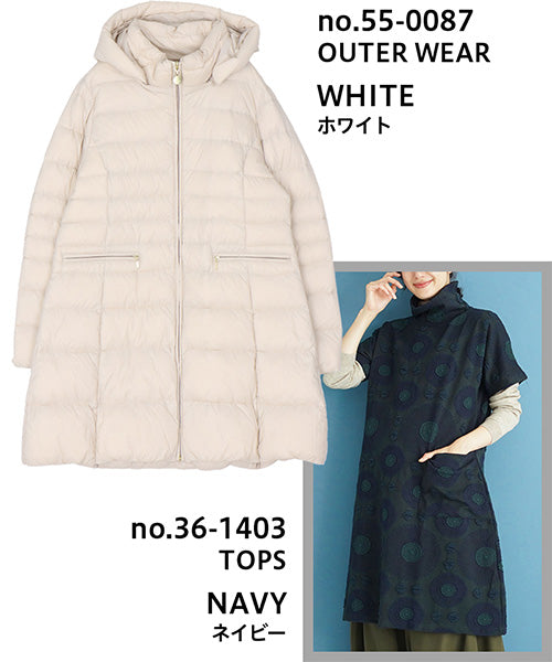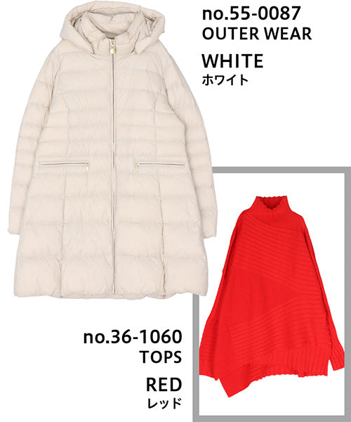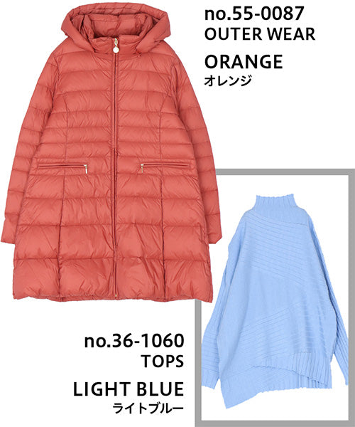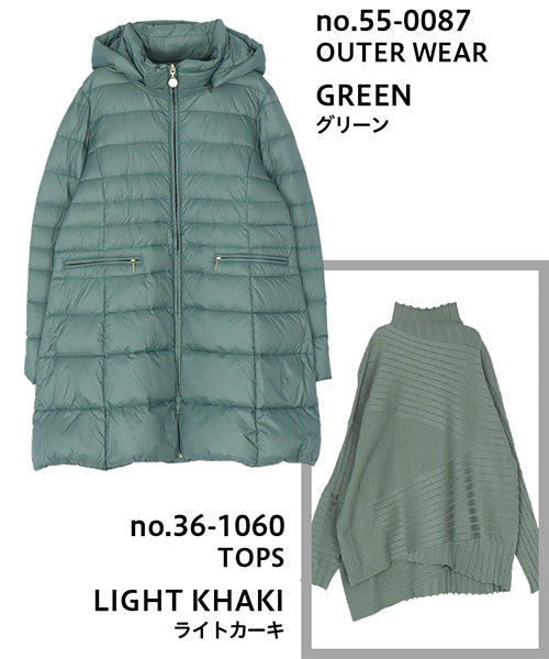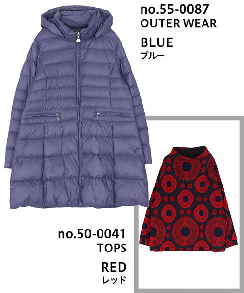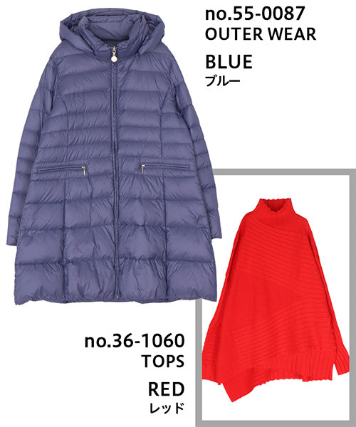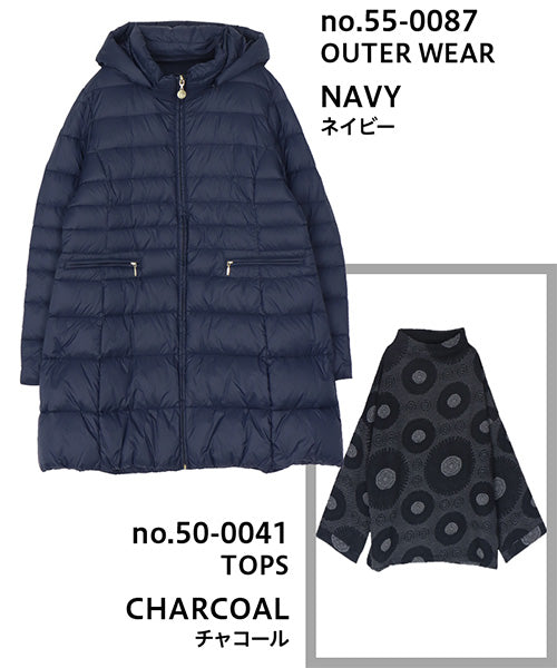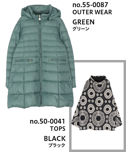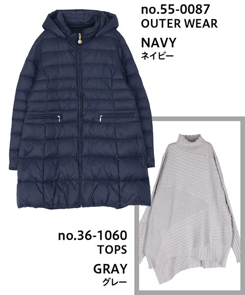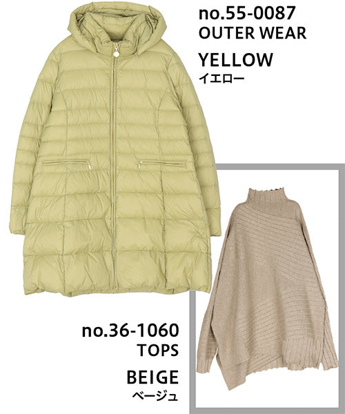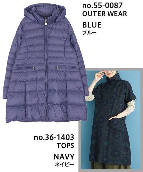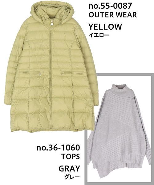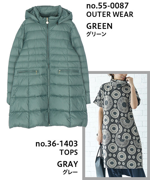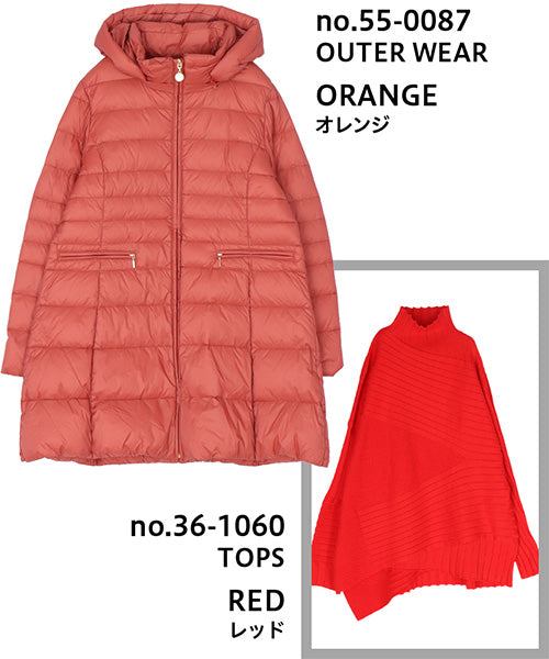【55-0087】 表側 ナイロン100% 裏側 ナイロン100% 充填物 ダウン80% フェザー20% 中わた(フード部分) ポリエステル100%