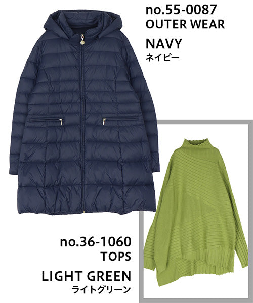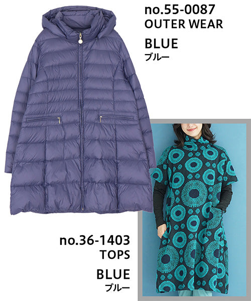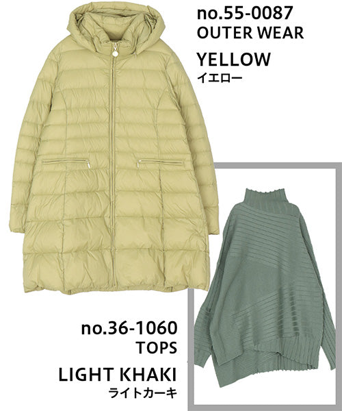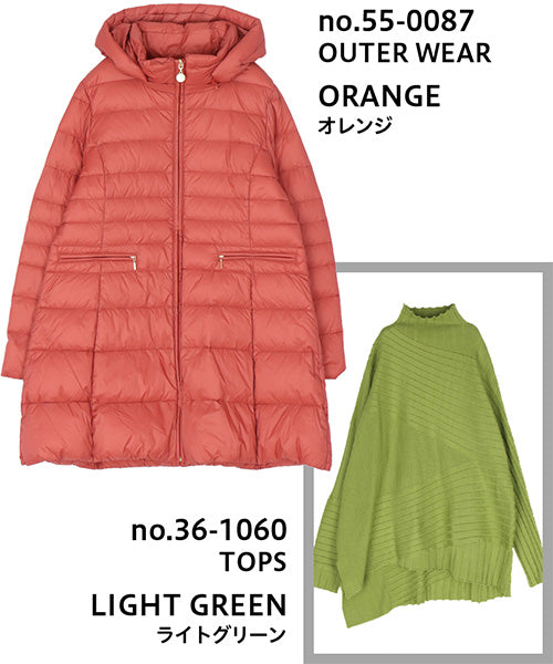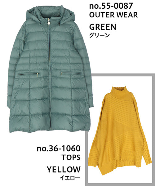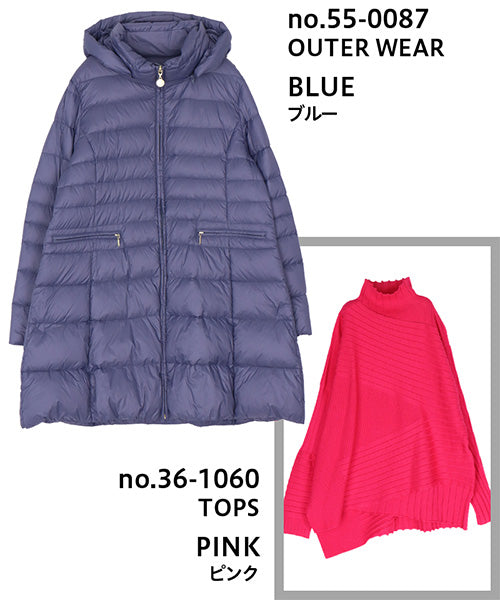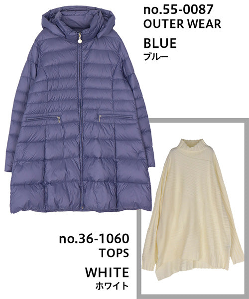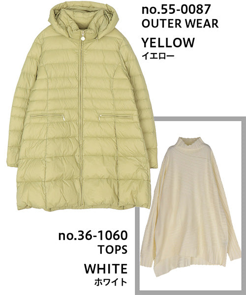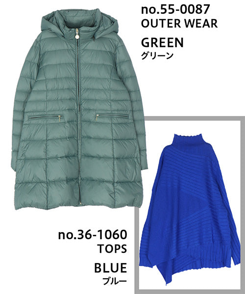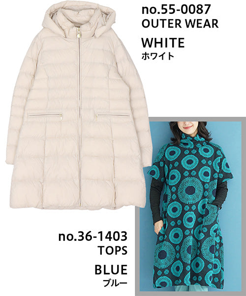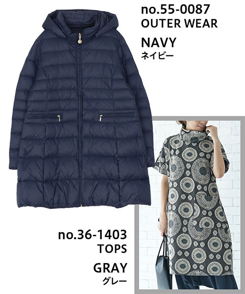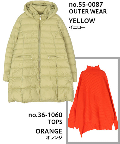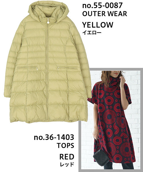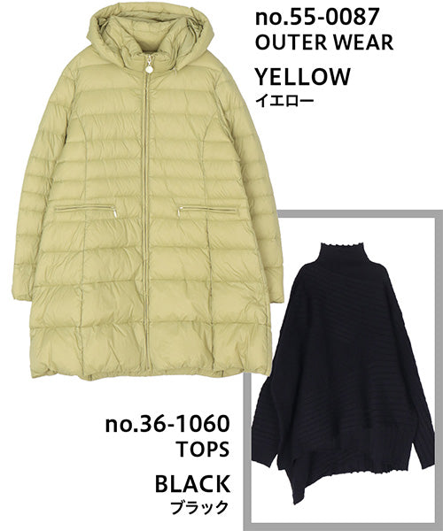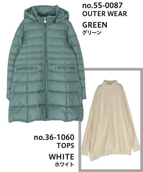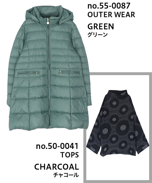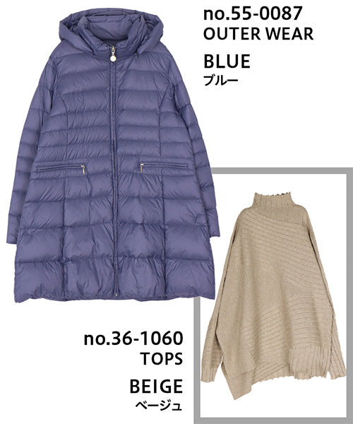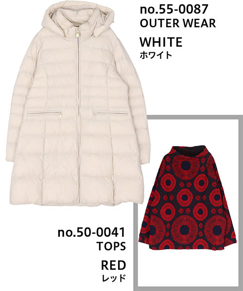 【55-0087】 表側 ナイロン100% 裏側 ナイロン100% 充填物 ダウン80% フェザー20% 中わた(フード部分) ポリエステル100%