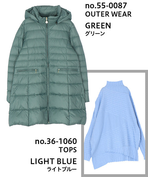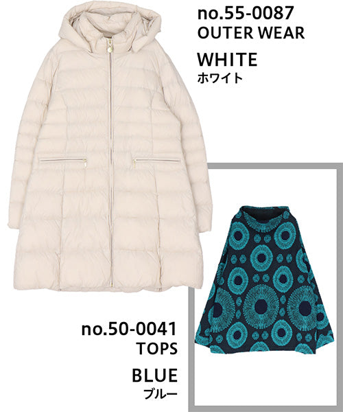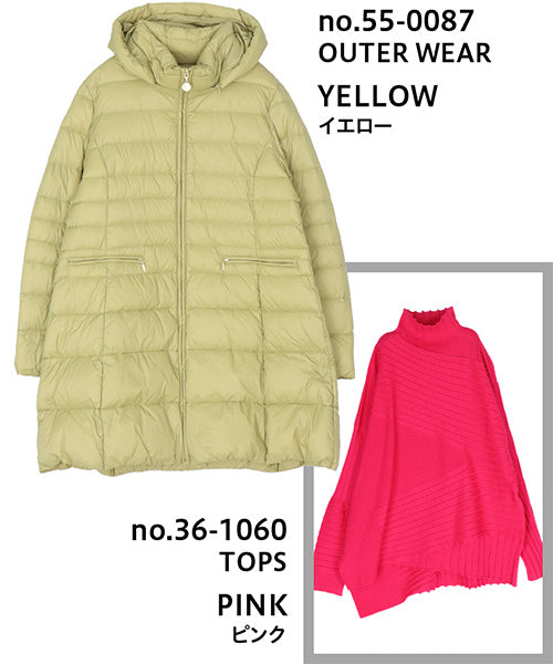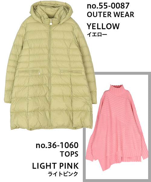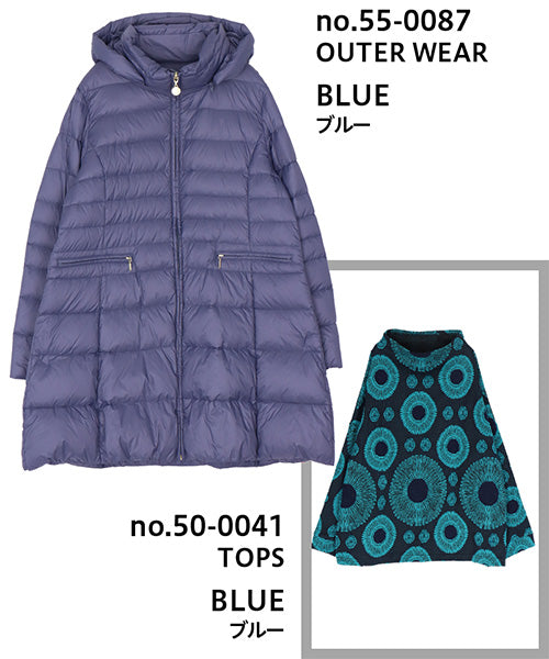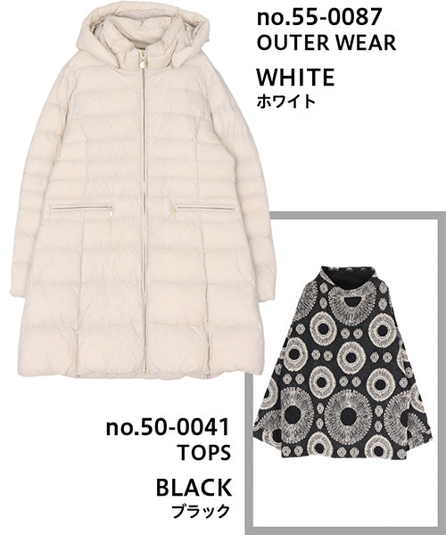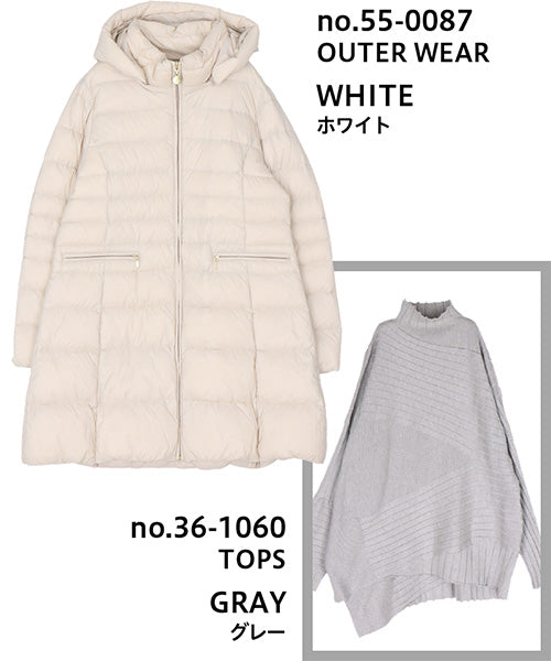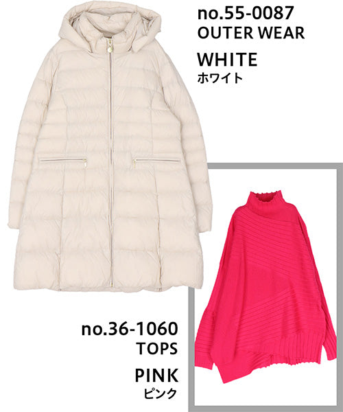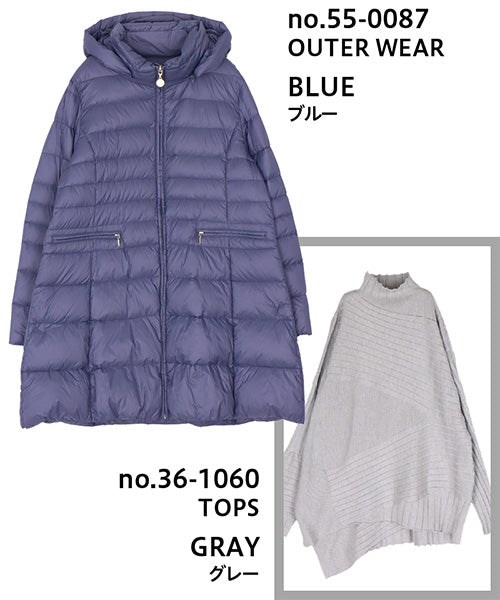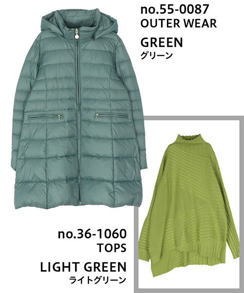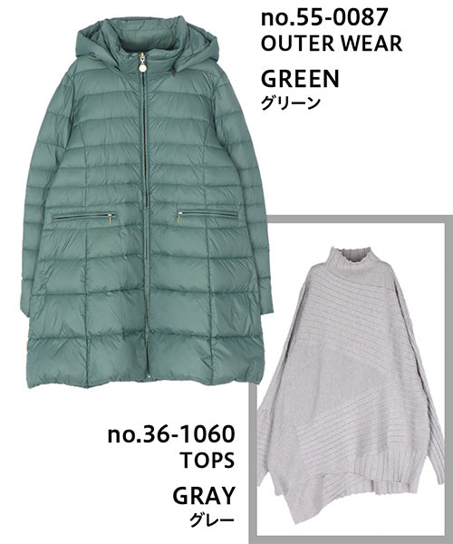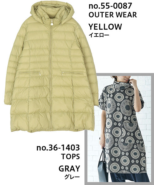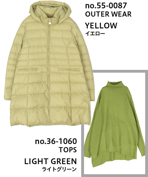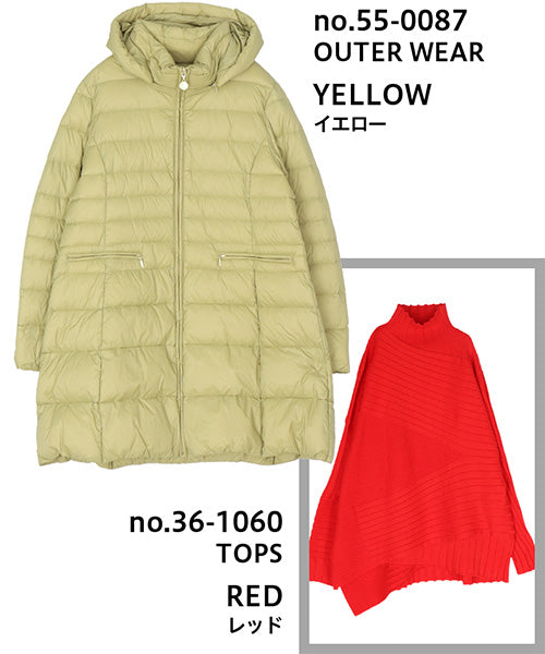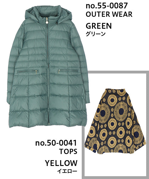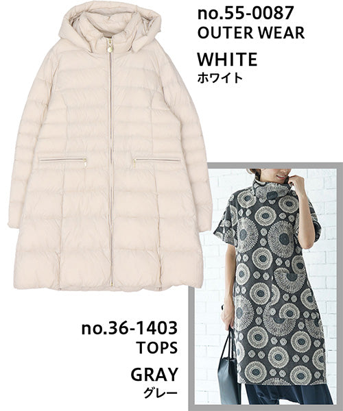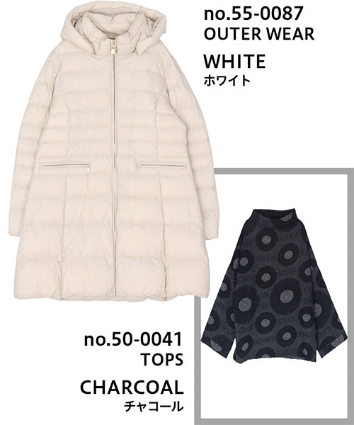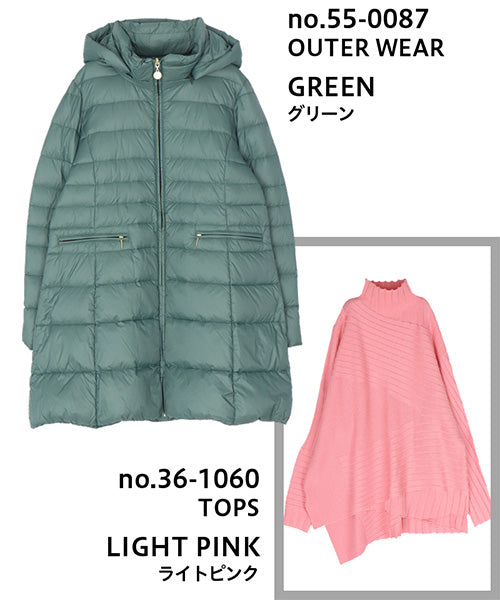 【55-0087】 表側 ナイロン100% 裏側 ナイロン100% 充填物 ダウン80% フェザー20% 中わた(フード部分) ポリエステル100%