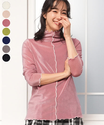 襟・袖ゴムシャーリングハイネック長袖インナーカットソー 36-1745
