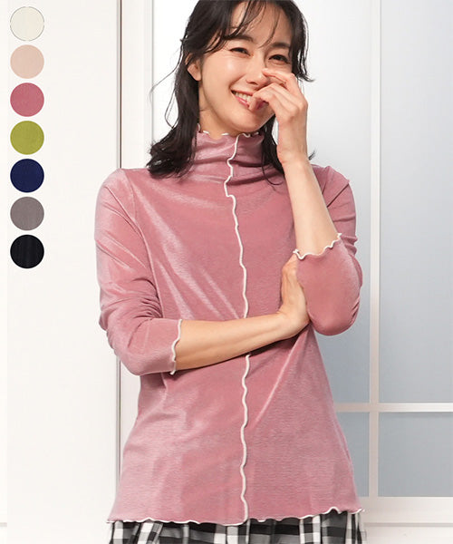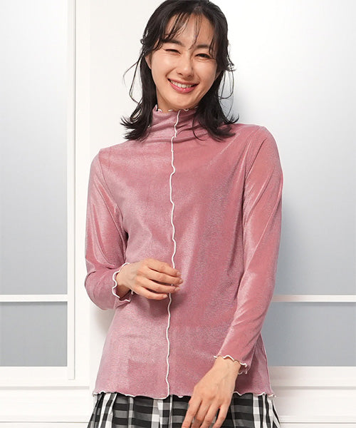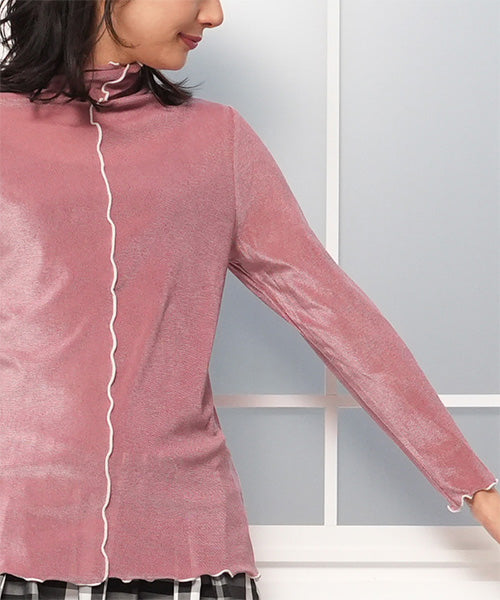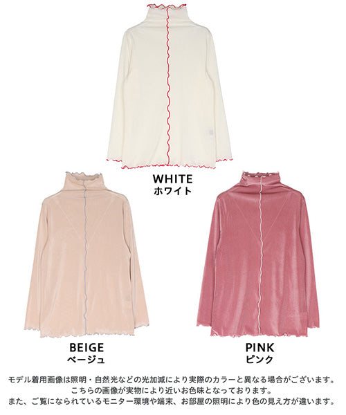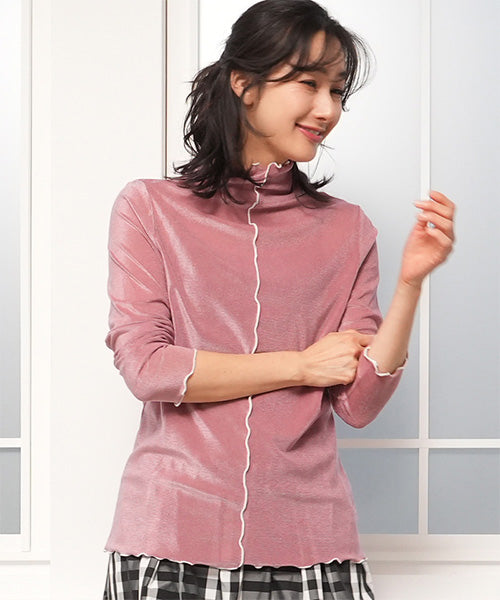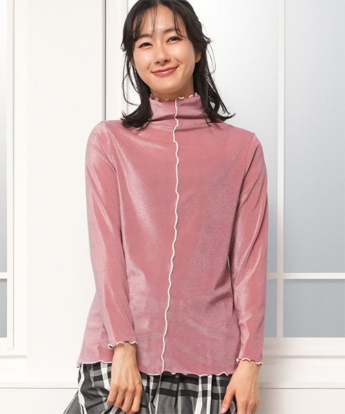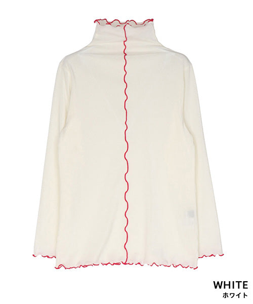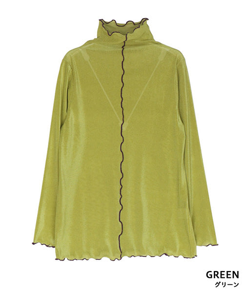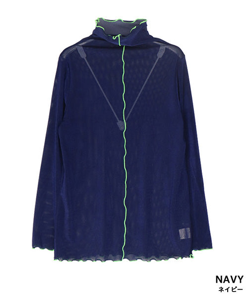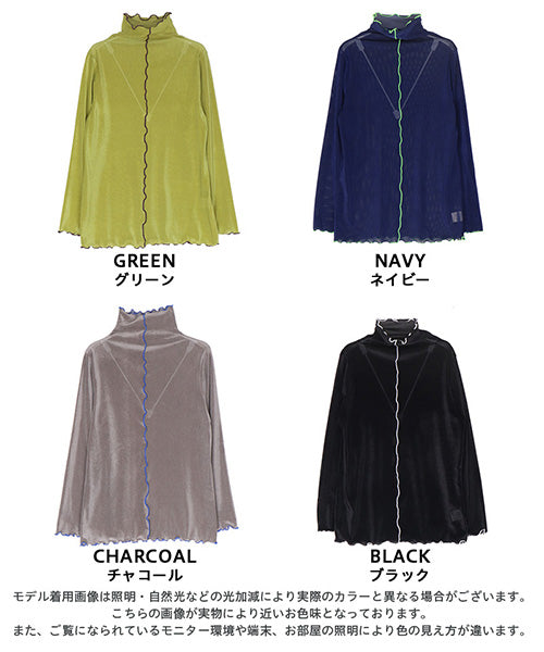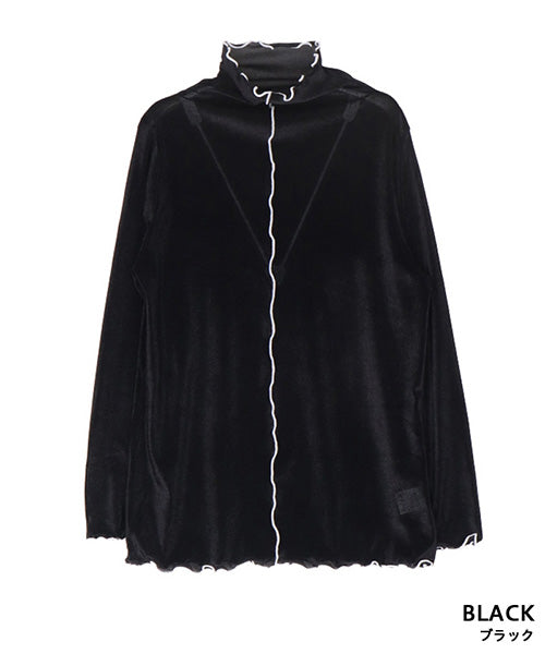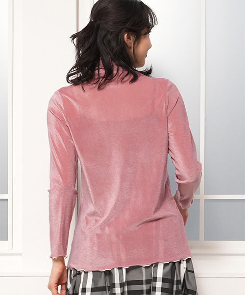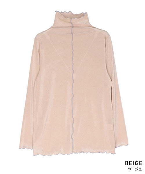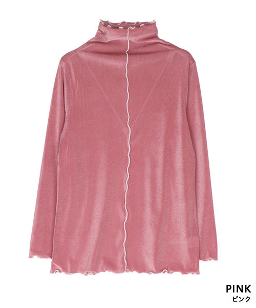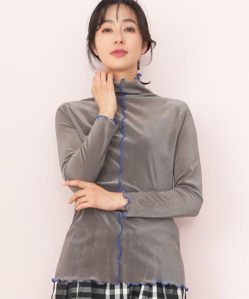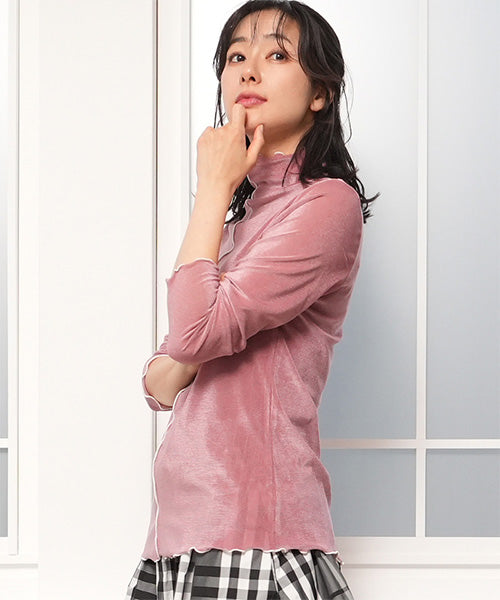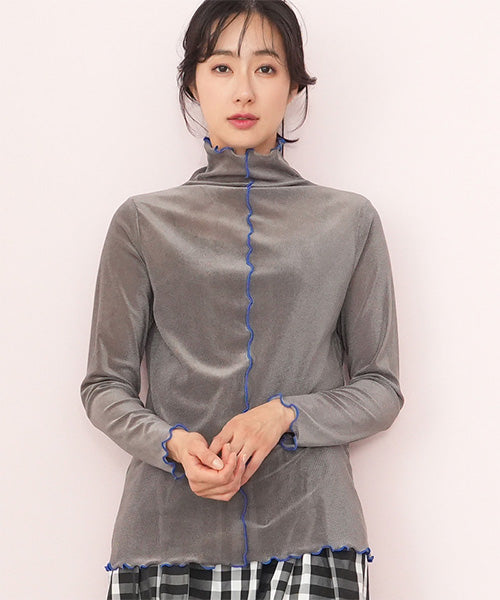 フロッキー調チュールのインナーカットソー。 メロウフリルを施すことで、表情のあるデザインに仕上がりました。 ほんのりと透け感のある素材でフロッキー調の表面感が特徴です。