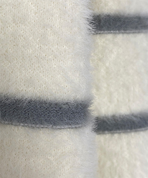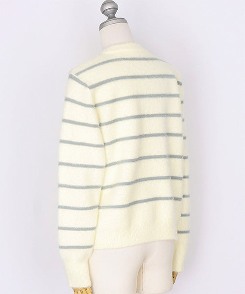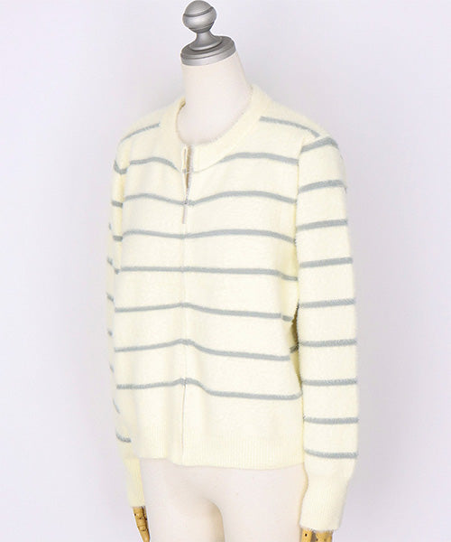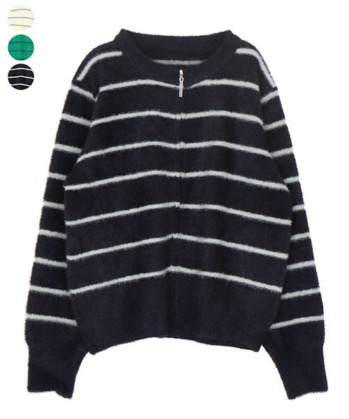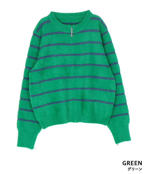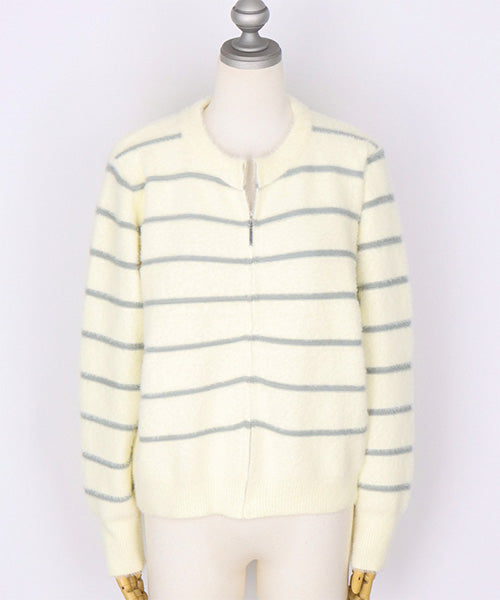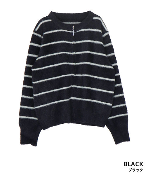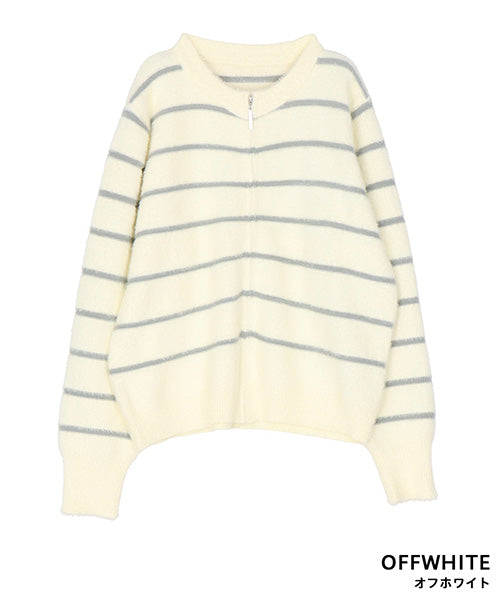 ふんわりとした起毛素材が魅力のボーダーブルゾン。 軽やかな着心地ながら、あたたかく包み込むようなぬくもりを感じられる1枚。 胸元のジップがアクセントになり、開けてラフに羽織っても、閉じてトップス風にも着られる万能デザインです。