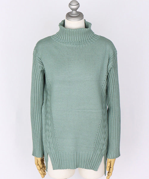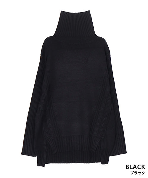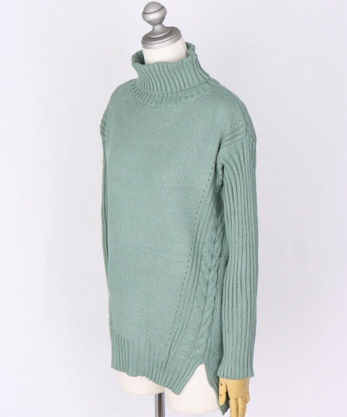 立体感のあるケーブル編みをサイドにあしらった、上品であたたかみのあるタートルニット。